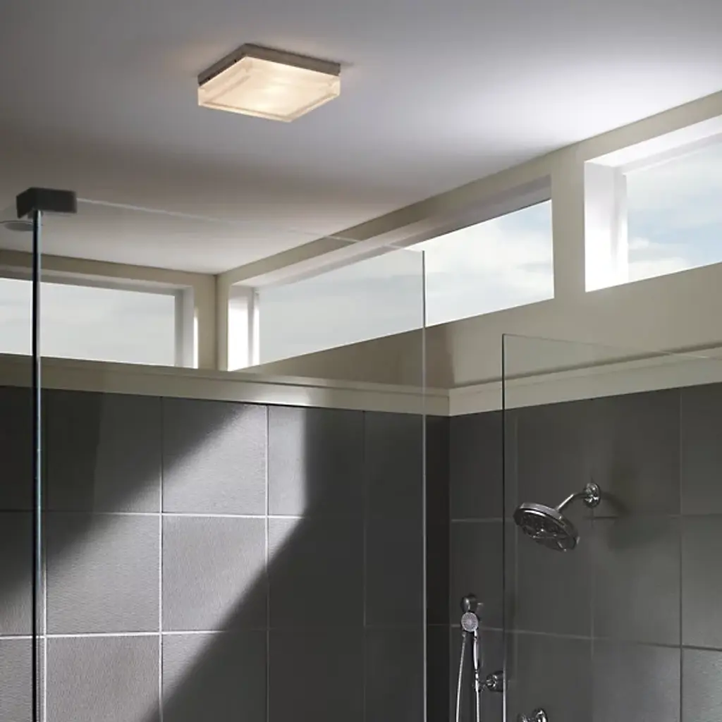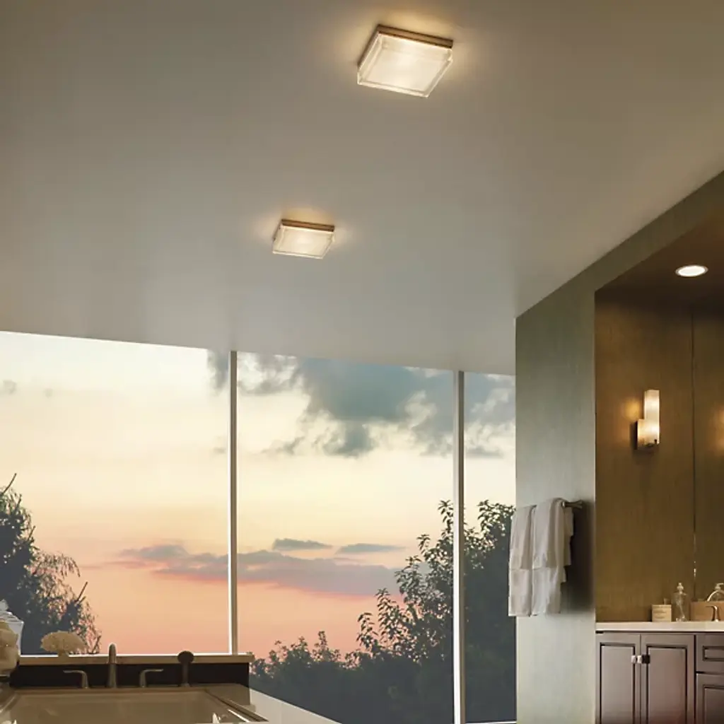 Clean and square--as its name implies--the Visual Comfort Modern, formerly known as Tech Lighting, Boxie Flushmount features a pressed and polished block of glass suspended from its die-cast Metal base. ADA Compliant.