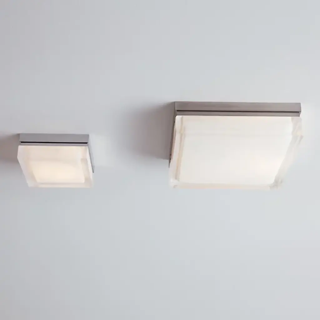 Clean and square--as its name implies--the Visual Comfort Modern, formerly known as Tech Lighting, Boxie Flushmount features a pressed and polished block of glass suspended from its die-cast Metal base. ADA Compliant.