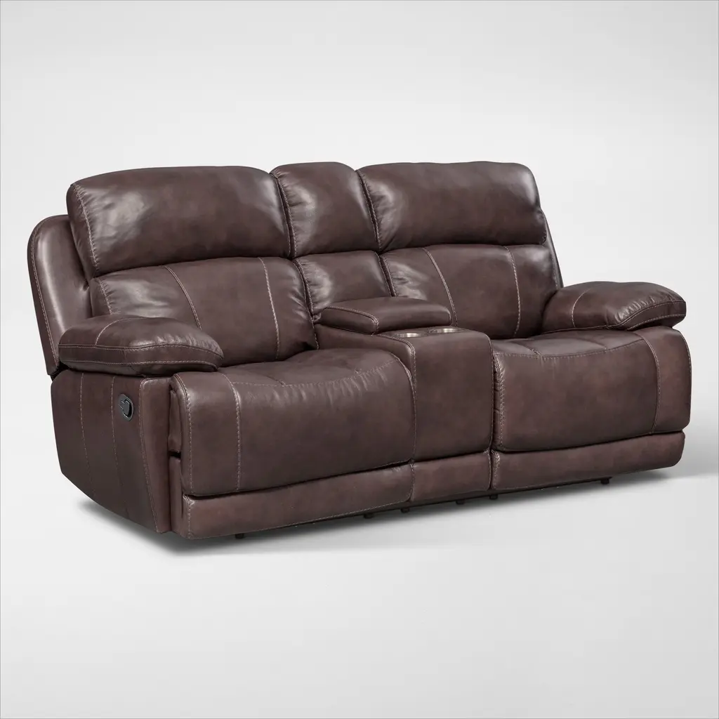 Experience modern luxury with this power reclining loveseat with console. The soft-to-the-touch leather and faux leather upholstery brings ultimate relaxation at a price you can afford. With sleek arms and a plush, pillowy back, the loveseat merges comfort and support with a high-style design.