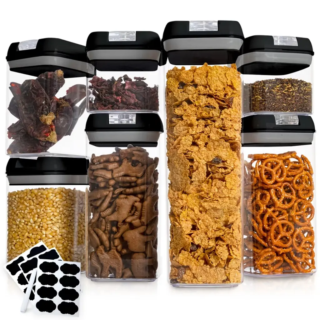 360-Degree Crystal-Clear: Easy visibility for pantry organization Shatter-Resistant: Durable Tritan plastic prevents accidental drops Space Efficient: Stackable design for well organized pantry Various Sizes: Set includes multiple sizes to accommodate different items BPA Free and Dishwasher Safe: Bombines hygiene and convenience Bonus Measuring Scoops: Includes 1/2 cup scoops for measurement Stain and Odor Resistant: Keeps your food storage containers in the best condition