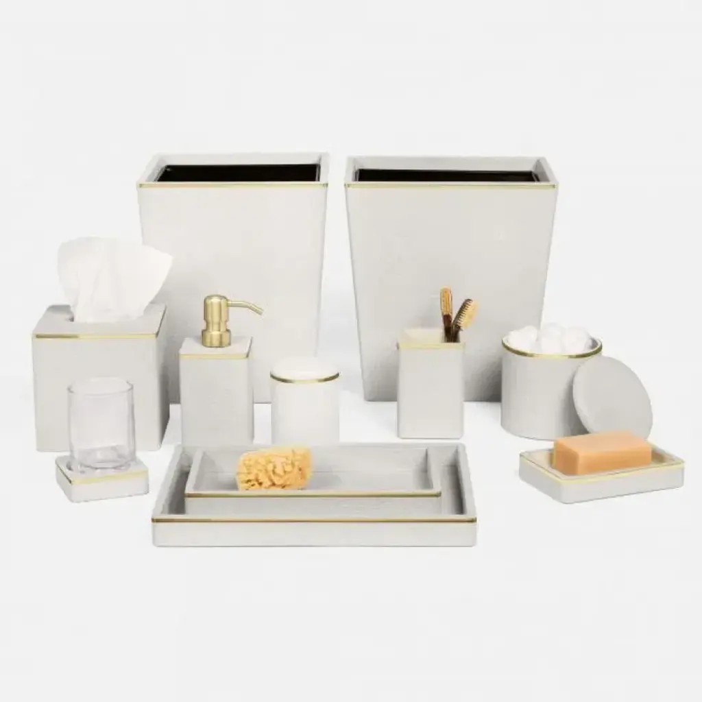 Pairing faux shagreen with delicate gold or silver trim, Bradford elevates the classic bathroom accessory set to peak luxury. The designers at Pigeon & Poodle believe the details of a home are just as important as the furniture. A gorgeous toothbrush holder or handcrafted canister can elevate an entire bath, the perfect frame can heighten the feel of a whole space, and a good-looking storage basket can be your look’s missing link. With thoughtful design and top-notch craftsmanship, Pigeon & Poodle create home accessories with the care and attention typically reserved for larger pieces of décor.