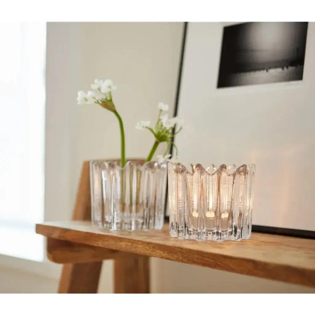 Back by popular demand, Brattleboro reimagines an archival design with on-trend fluting for a textured tealight to delight any tabletop. Plus, the hand-crafted fluting diffuses and enhances light for a one-of-a-kind optical effect – you’ll have to see it to believe it. Comes pre-boxed for easy gifting. At Simon Pearce, fine glassware is still hand-blown in the traditional style. Simon Pearce opened his first glassblowing shop in 1971 in Kilkenny, Ireland. Ten years later, the factory was moved to Quechee, Vermont, where it remains today. The Ottauquechee River provides clean, hydroelectric power for the facility. All Simon Pearce items are proudly made in the U.S.A.