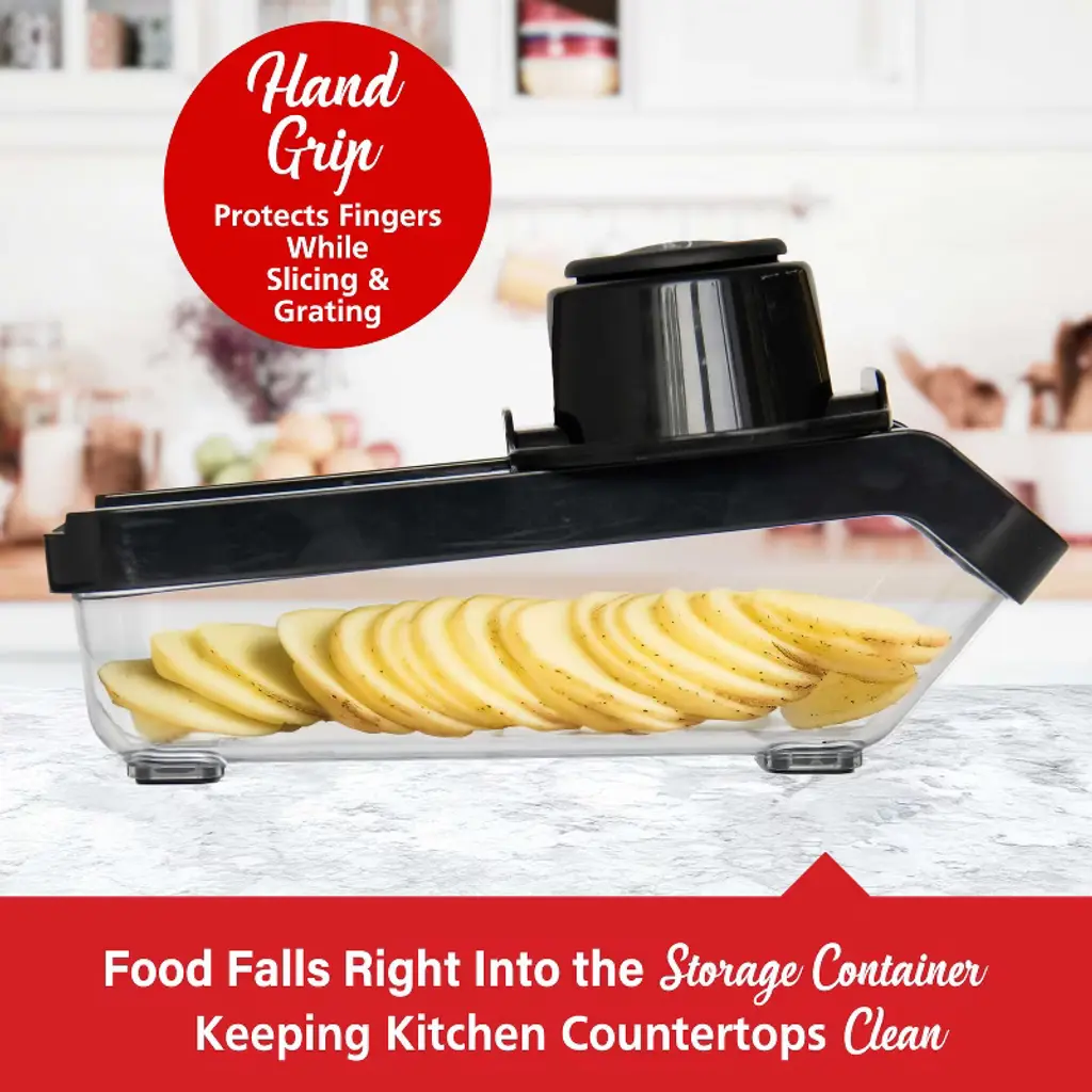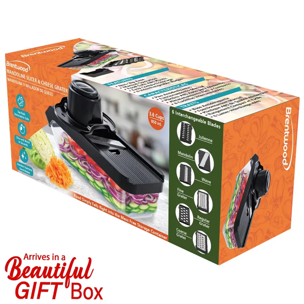 Brentwood Mandoline Slicer And Cheese Grater With 3.6-cup Storage Container And 6 Interchangeable Stainless Steel Blades, Black