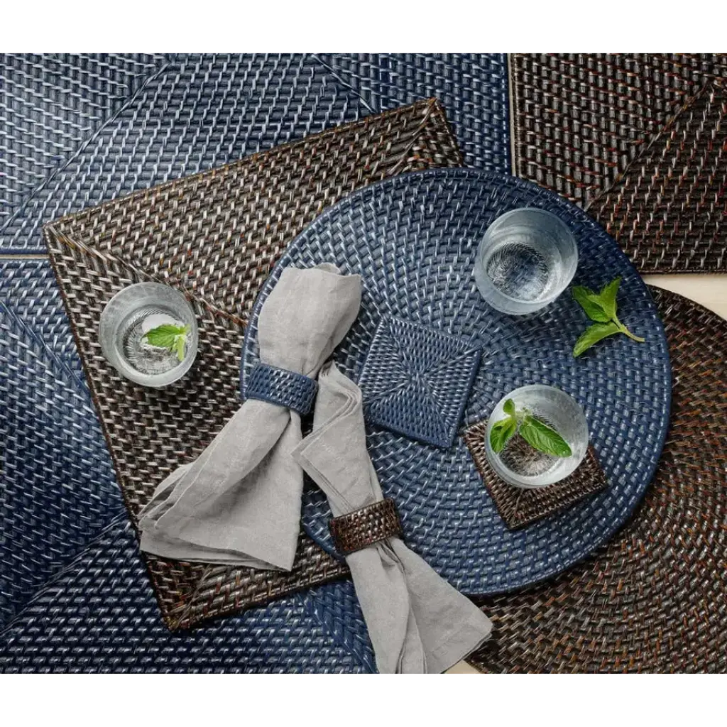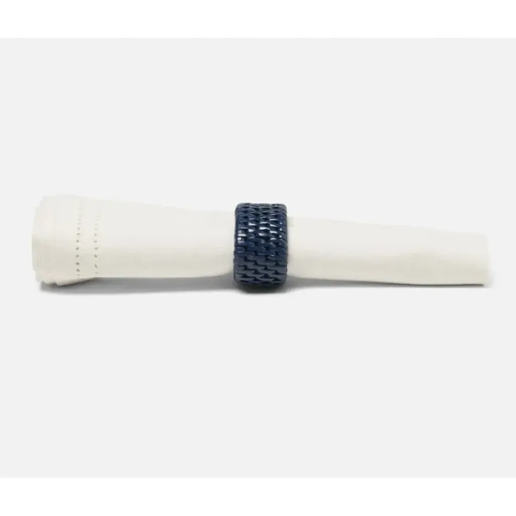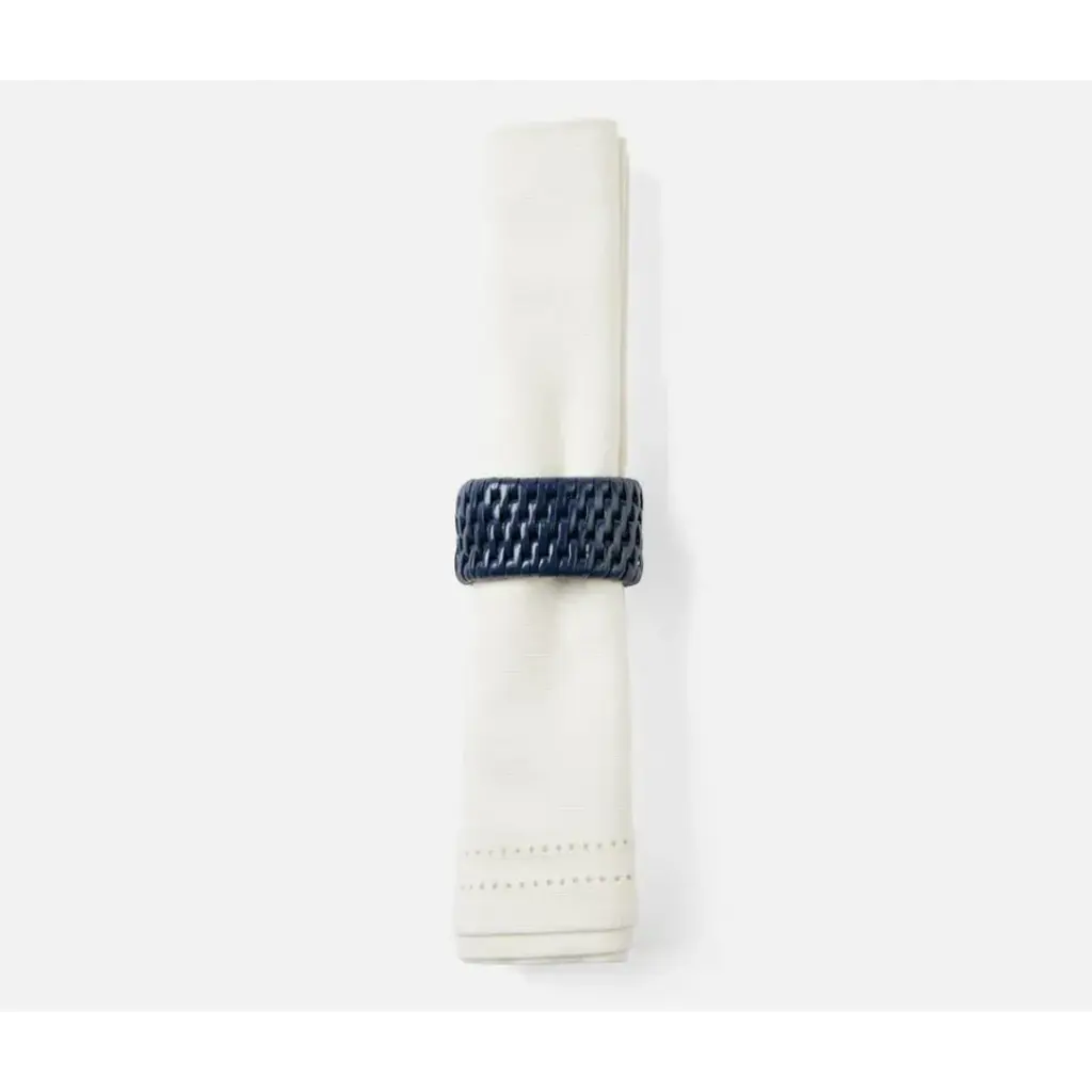 Brianne Polished Navy, Napkin Ring, Rattan, Boxed Set Of 4