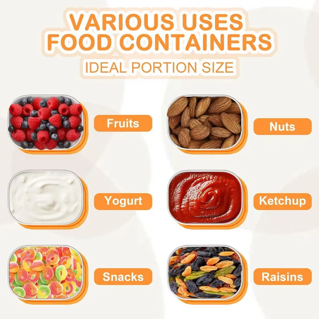 BRINJOY's 3-pack stainless steel snack containers are meticulously designed to provide safe and convenient food storage solutions for children and families. Each container is crafted from high-quality, food-grade stainless steel that ensures no chemical coatings or harmful substances come into contact with food. The 8oz capacity is ideal for portion-controlled snacks like fruits, nuts, yogurt, and vegetables. Featuring vibrant orange silicone lids with custom-fitted grooves, these containers create a reliable leak-proof seal to prevent spills while remaining easy for small hands to open and close. The lightweight yet durable construction makes them perfect for lunchboxes, daycare, picnics, or travel. With a stackable design for efficient storage and dishwasher-safe stainless steel bases (lids require hand washing), this set combines practicality with peace of mind for parents.