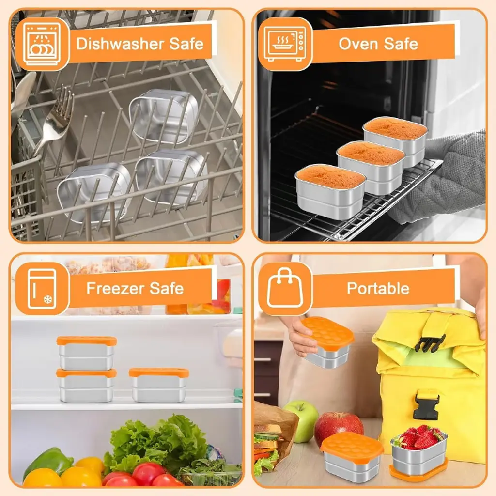 Brinjoy 3 Pack Silicone Snack Lunch Boxes With Lids Frozen Snack Lunch Stainless Steel Reusable Orange