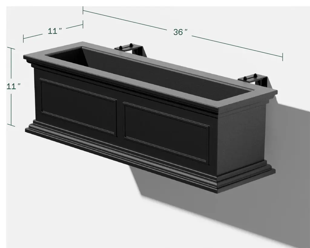 Brixton Window Box Planter With Bracket, 36", Black, 36 Inch, 2 Pack