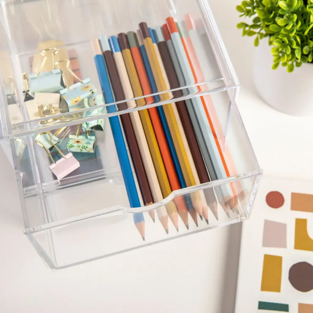 Brody 2 Pack Plastic Stackable Office Desktop Organizer Boxes With Drawer