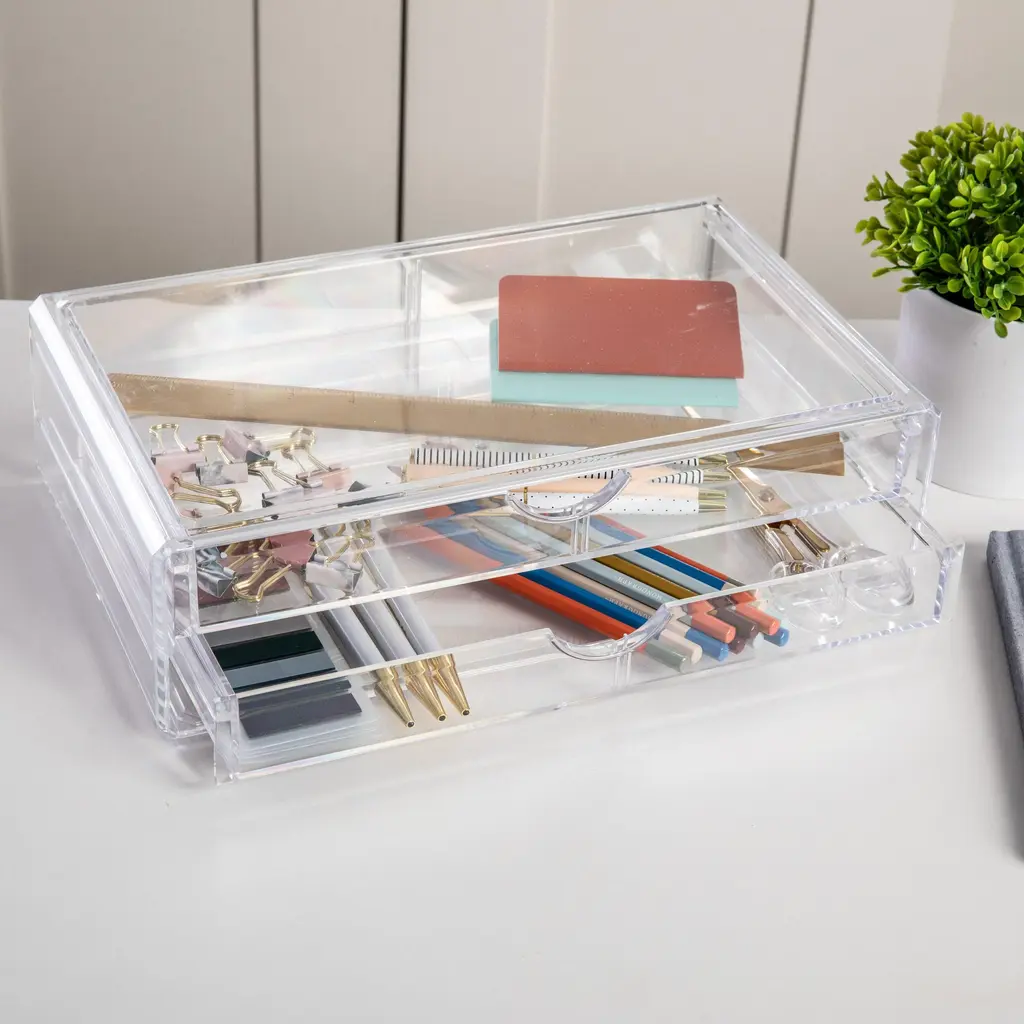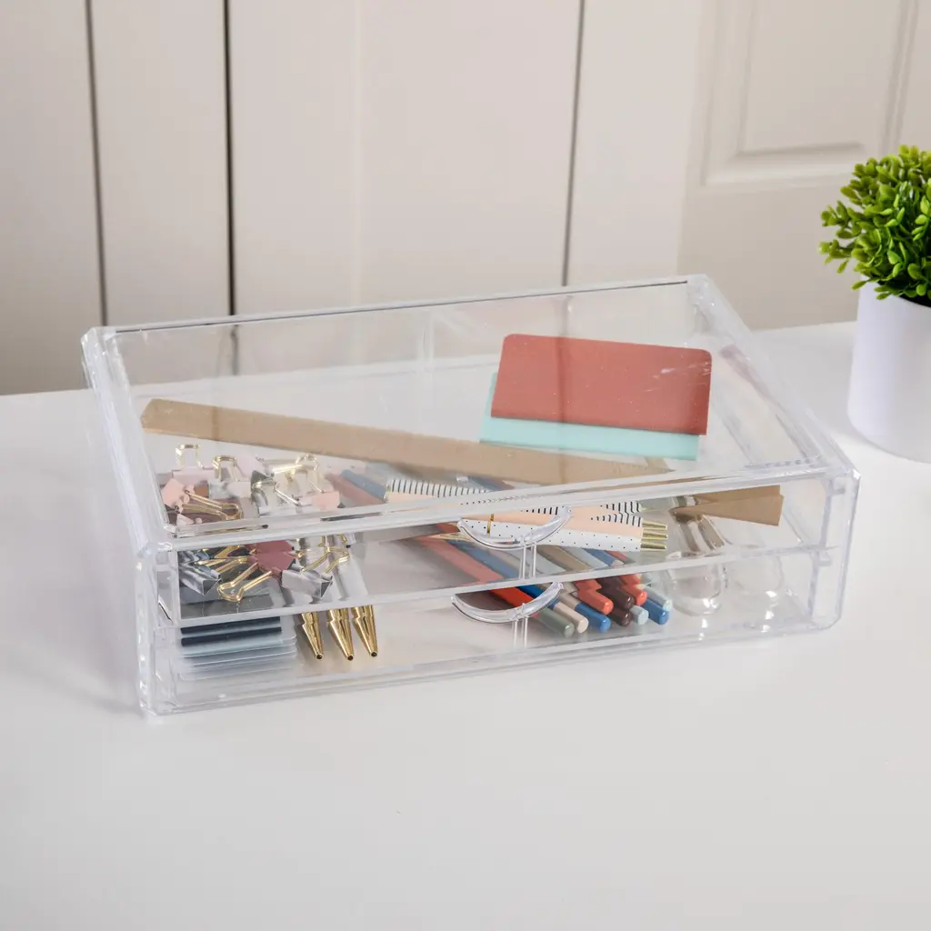 Brody Plastic Stackable Office Desktop Organizer Box With 2 Drawers