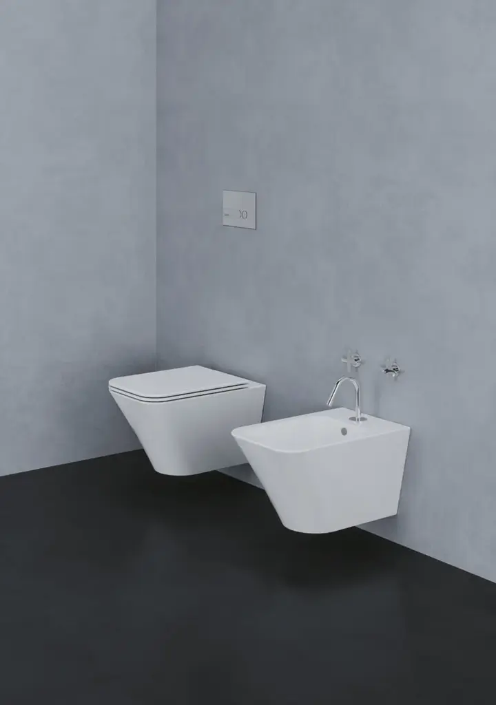 Build is a wall-hung ceramic bidet. Build is inspired by the purity and clean lines of Nordic design. It consists of floor-mounted and wall-hung sanitary ware, an elegant freestanding bathtub and various models of the washbasin with wooden units. The toilets feature the Easy Clean and Water saving system, patented technology, which allows a complete single flush of 3 litres instead of 9 litres required for a standard flush. Build consists of storage containers available in elm with a white, natural or cement finish. Certified anti-bacterial treatment is available on request for all ceramic products.