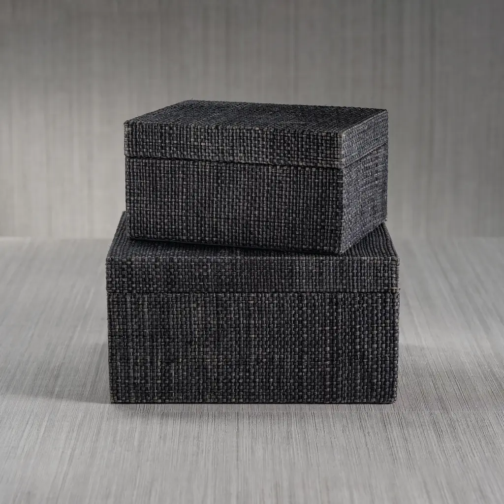 Bumi Blue Raffia And Chambray Decorative Box, Large