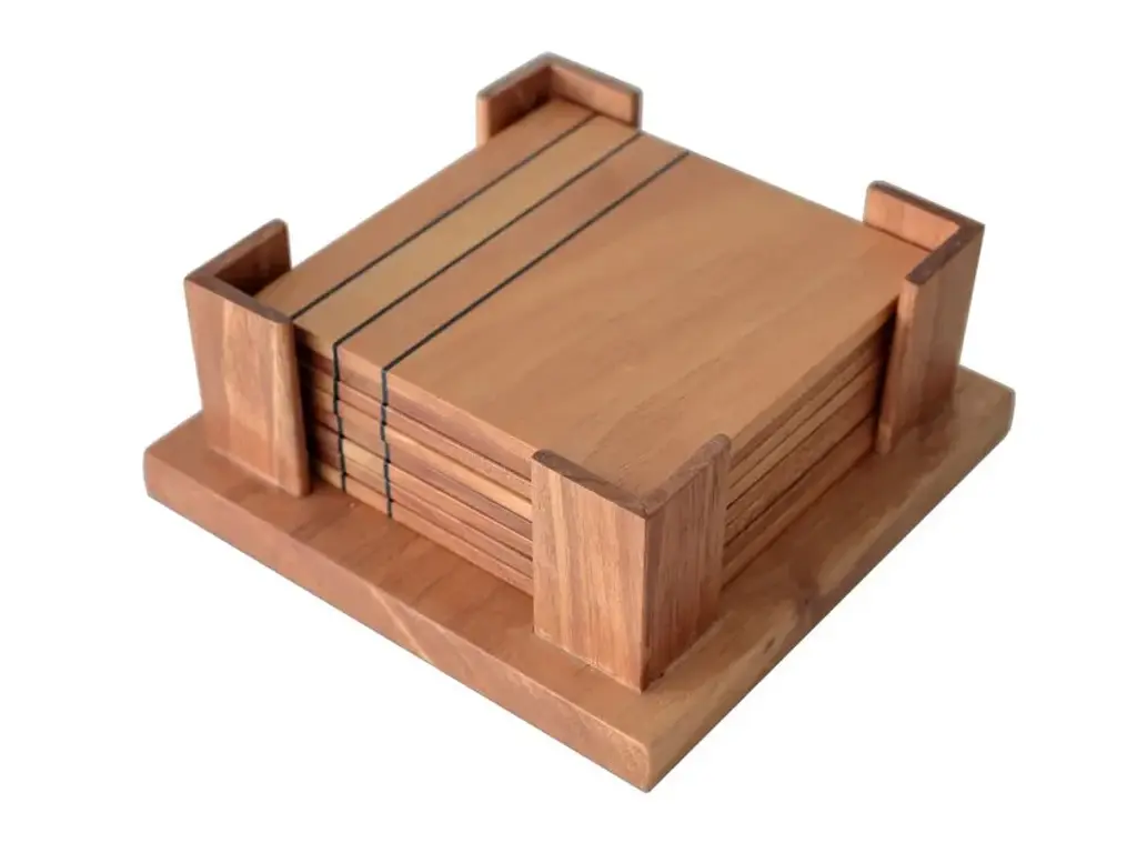 Burl Veneer Box Coaster Set 4.7" X 4.7" X 3.5"