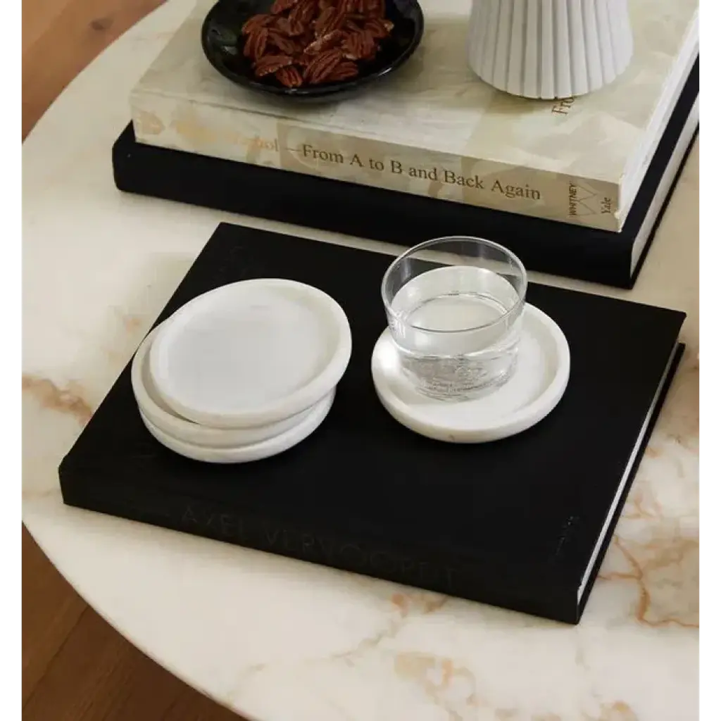 This round marble coaster with a raised edge speaks to a sense of effortless luxury. Established in 1891, Sferra began in Italy as a purveyor of fine Italian lace to the discerning clientele who frequented the grand seaside resorts in the East Coast of the United States. Later, the company expanded to include damasks from Ireland, French Alencon lace, and embroideries from Belgium and Switzerland. Today, Sferra is one of the most respected and innovative brands of luxury bed, bath, and table linens in the United States.