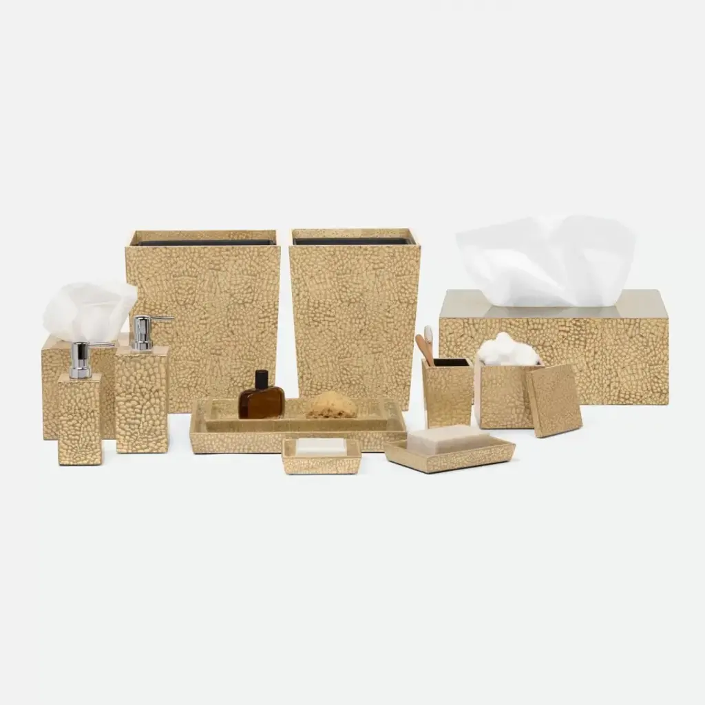 Metallics take the Callas to the next level—our new gold and silver finishes enhance its artisanal allure. Look closely at our Callas and you’ll see that its mosaic-like finish is the result of delicately cracked eggshell, meticulously placed and lacquered over. Clients will appreciate the ancient Asian technique. The designers at Pigeon & Poodle believe the details of a home are just as important as the furniture. A gorgeous toothbrush holder or handcrafted canister can elevate an entire bath, the perfect frame can heighten the feel of a whole space, and a good-looking storage basket can be your look’s missing link. With thoughtful design and top-notch craftsmanship, Pigeon & Poodle create home accessories with the care and attention typically reserved for larger pieces of décor.
