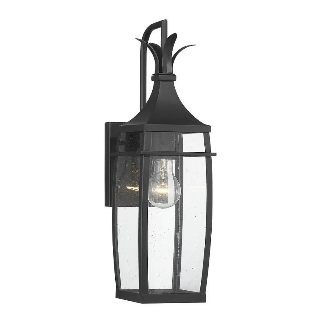 Take the charm outside with the Chandler Outdoor Wall Lantern. The Black finish perfectly accents the curved lines and ring detail atop the tapered frame, while the Antiqued Glass creates a unique glow. Part of our Rain or Shine Series and backed by our five-year warranty.