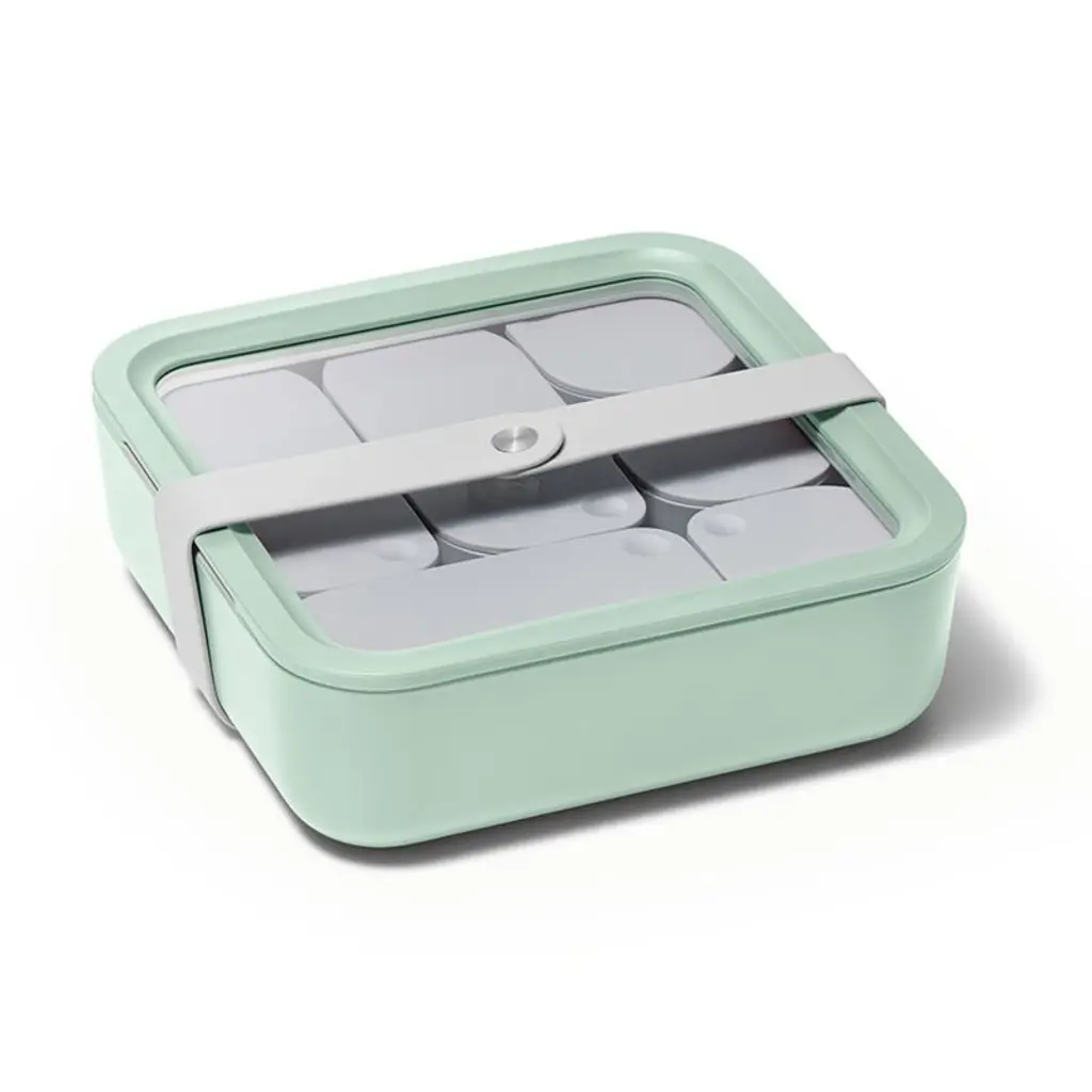 Caraway Home brings its signature beautiful and modern minimalism to food storage with this lidded container. Crafted of ceramic-coated glass in misty, minty green, the large non-stick square elevates leftovers, lunches and more while going from freezer or fridge to microwave or oven. The glass lid with a matching rim and silicone gasket provides an airtight seal to keep contents fresh.