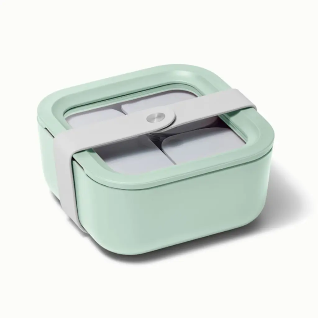 Caraway Home brings its signature beautiful and modern minimalism to food storage with this lidded container. Crafted of ceramic-coated glass in misty, minty green, the non-stick square elevates leftovers, lunches and more while going from freezer or fridge to microwave or oven. The glass lid with a matching rim and silicone gasket provides an airtight seal to keep contents fresh.
