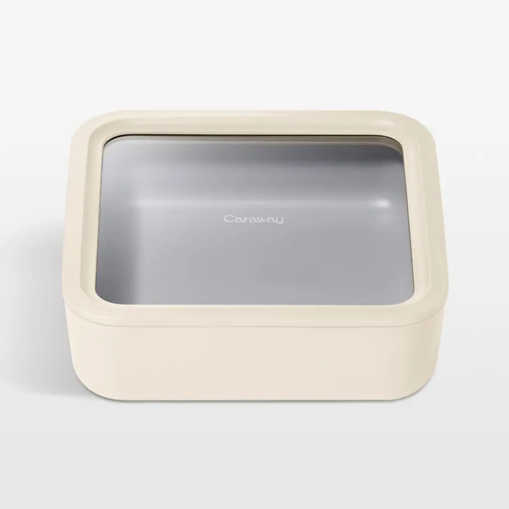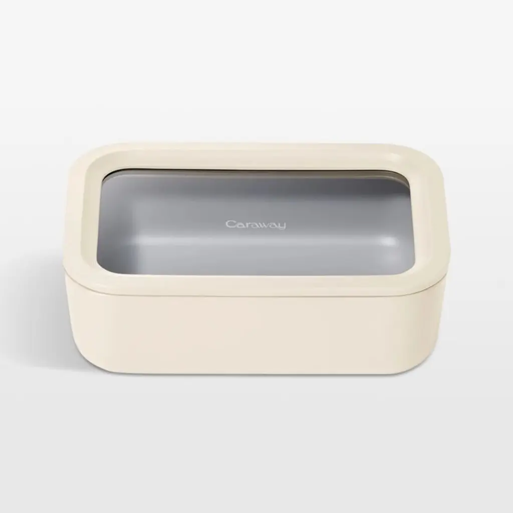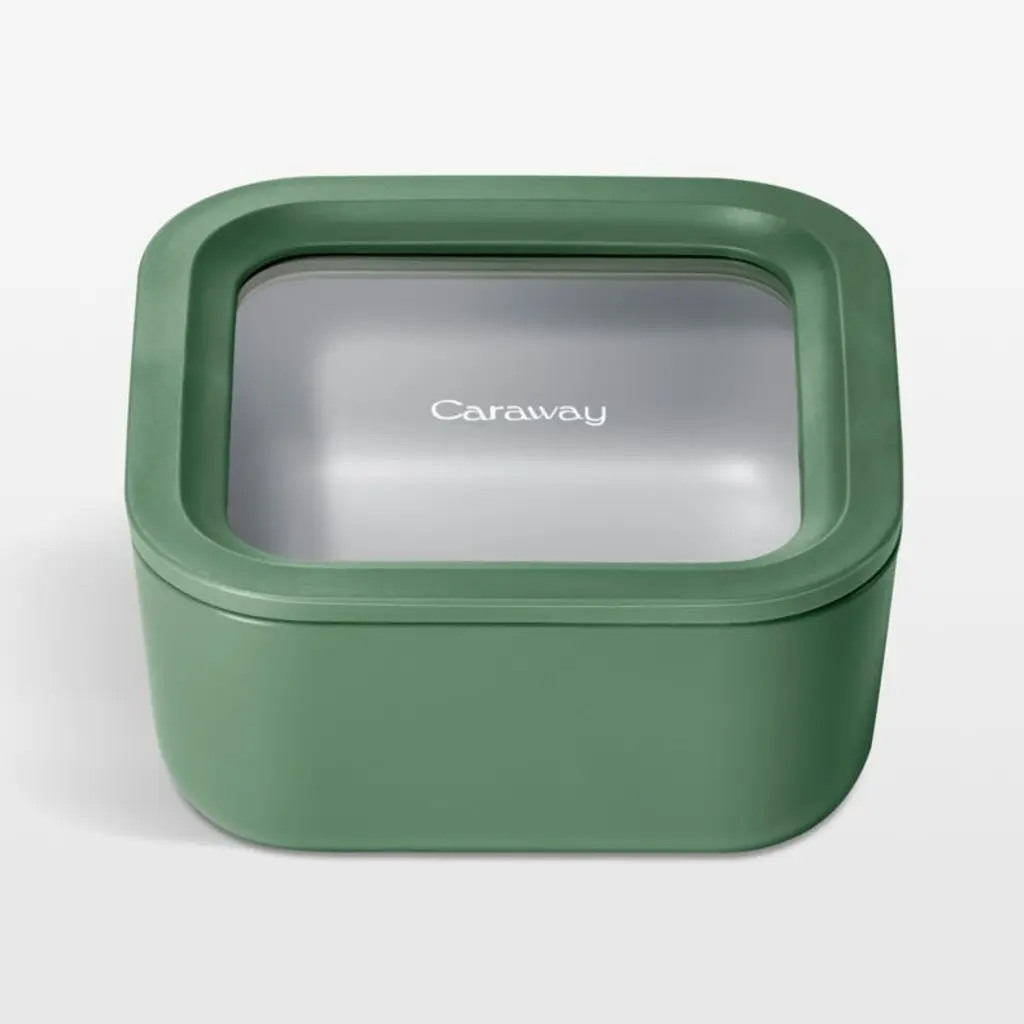 Caraway Home brings its signature beautiful and modern minimalism to food storage with this lidded container. Crafted of navy blue ceramic-coated glass, the non-stick container elevates leftovers, lunches and more while going from freezer or fridge to microwave or oven. The glass lid with a matching rim and silicone gasket provides an airtight seal to keep contents fresh.