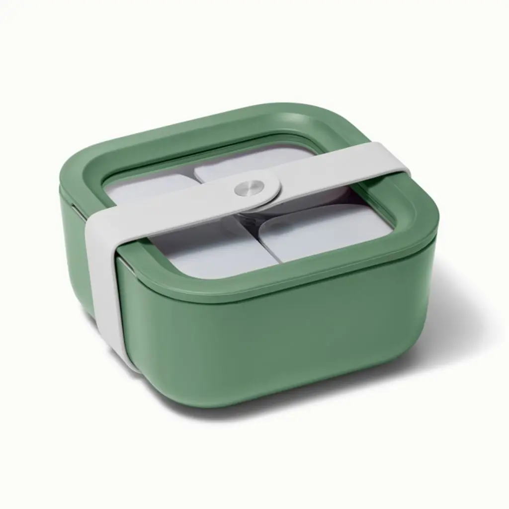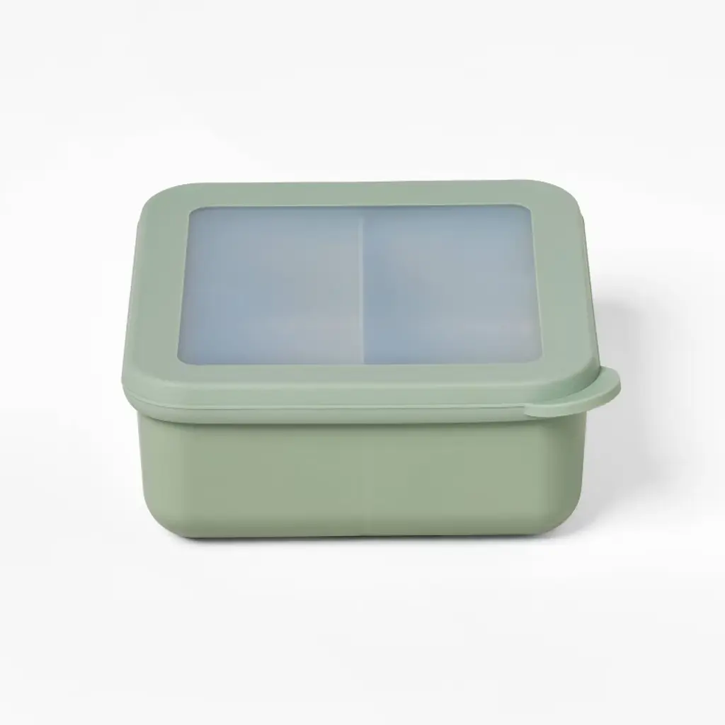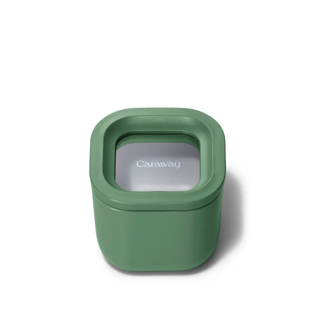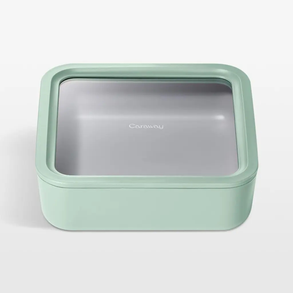 Caraway Home brings its signature beautiful and modern minimalism to food storage with this lidded container. Crafted of sage green ceramic-coated glass, the non-stick square elevates leftovers, lunches and more while going from freezer or fridge to microwave or oven. The glass lid with a matching rim and silicone gasket provides an airtight seal to keep contents fresh.
