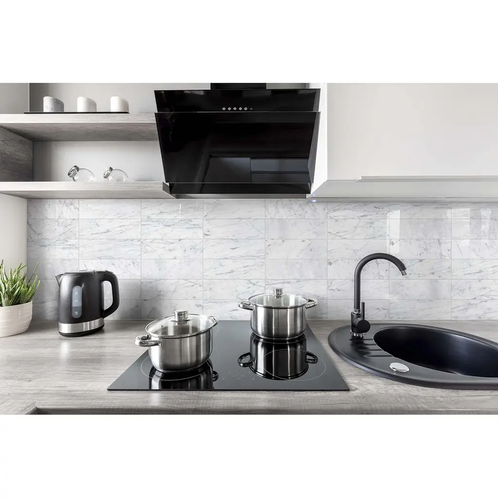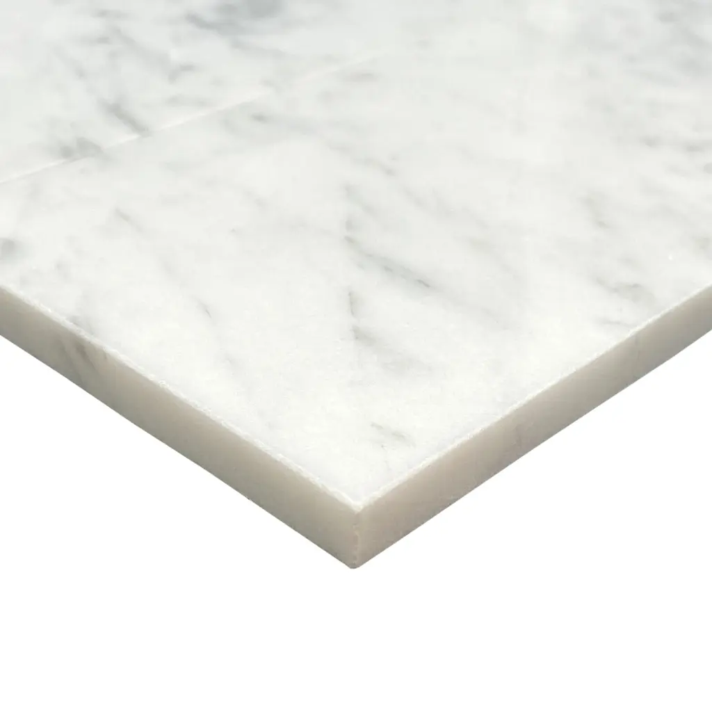 Carrara Marble 3"x9" Polished Tile is a stunning tile that exudes luxury and sophistication. The polished finish creates a beautiful mirror-like surface that reflects light, making any space look brighter and more spacious. The pristine white color of this tile adds a sense of purity and tranquility to any room, while the unique veining patterns of Carrara marble give it character and depth. Whether used as a backsplash, shower wall, or flooring, Carrara 3"x9" Polished Tile is a versatile tile that complements a wide range of design styles, from modern to traditional. Its high-quality marble material is durable and long-lasting, making it a smart investment for any home renovation project. Add a touch of elegance to your home with the timeless beauty of Carrara 3"x9" Polished Tile.What's included?Product Details Sample Details