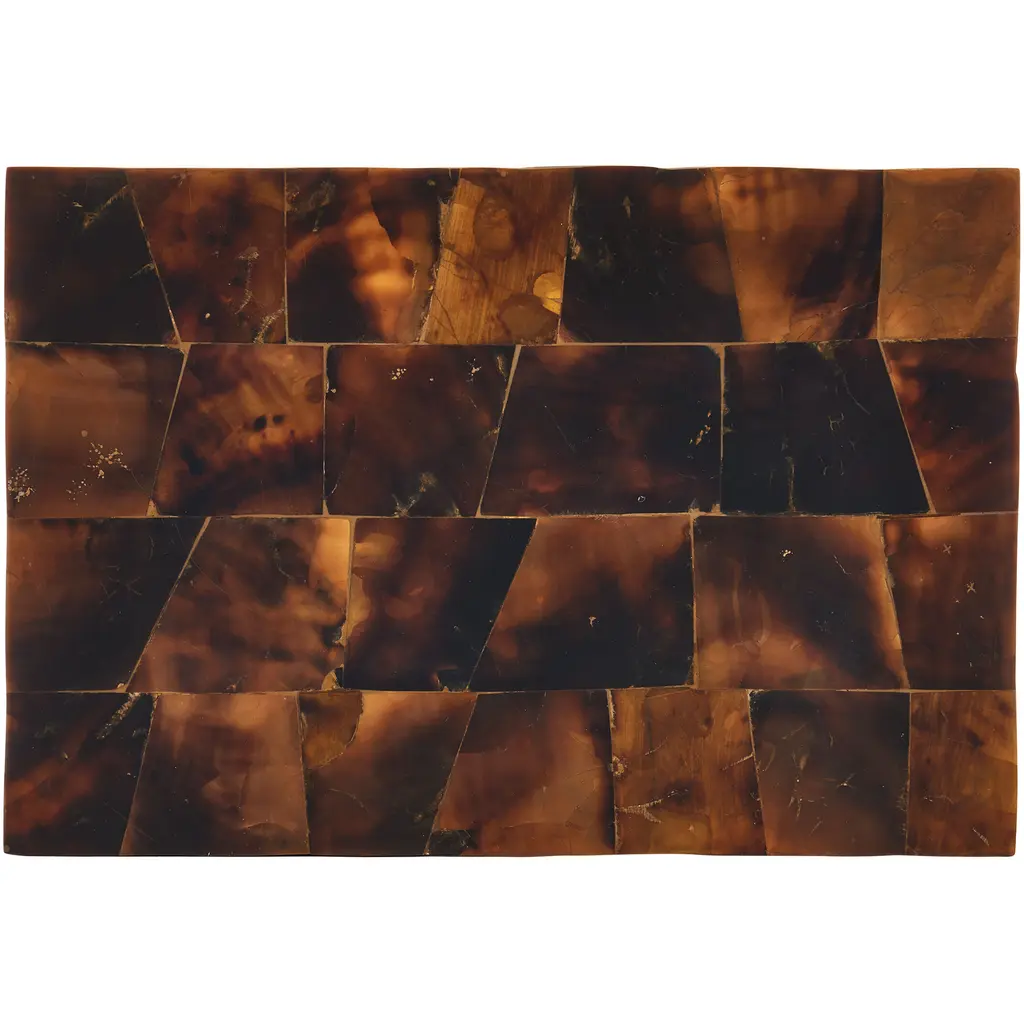 The Casey Brown Box has artisanal surfaces clad in pieces of natural penshells applied like a sophisticated puzzle. Rims of brass-finished stainless steel which enhance the warmth of the design. Though sealed, it is not watertight and should not contain water.