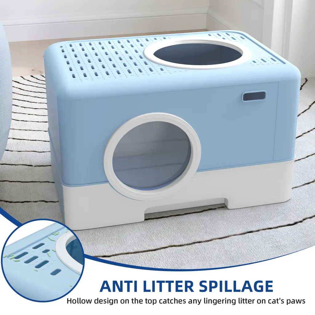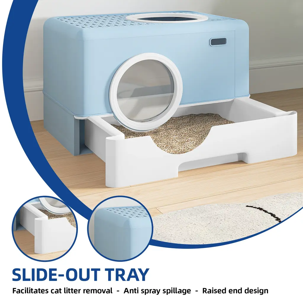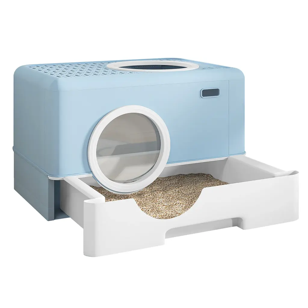 Cat Litter Box Enclosed Cat Toilet - Blue