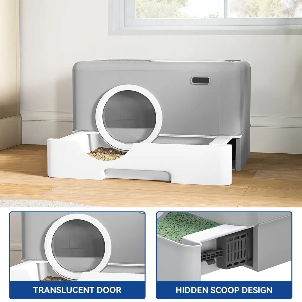 Cat Litter Box Enclosed Cat Toilet - Grey
