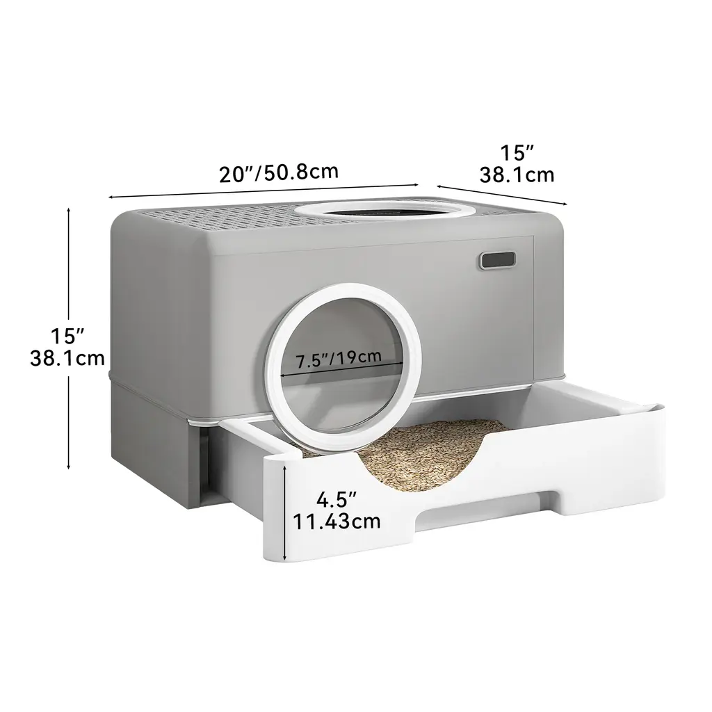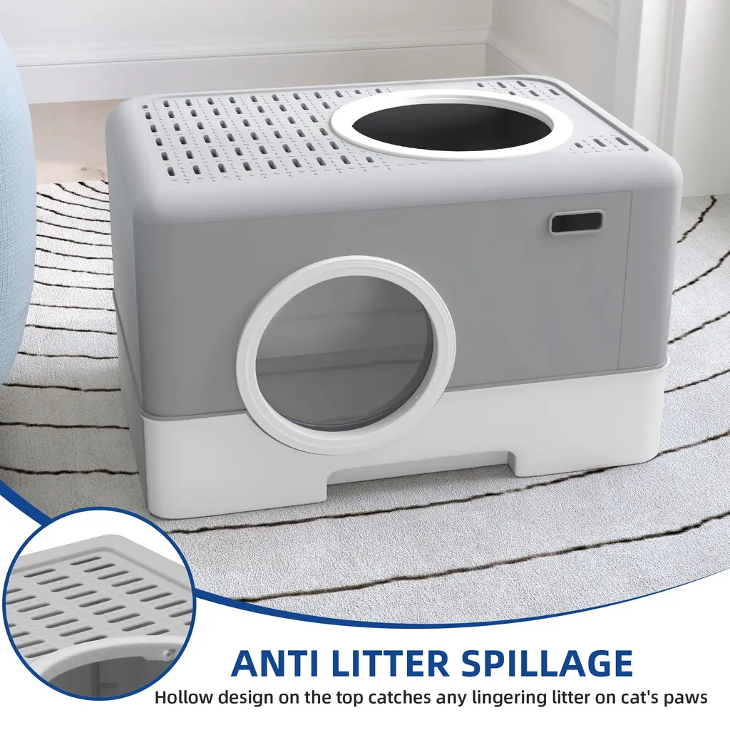 Make your cat's litter time cleaner and more comfortable with our Moasis Cat Litter Box Enclosed Cat Toilet. Its unique design allows for easy access and exit, reducing litter scatter and making cleaning a breeze. Plus, its semi-enclosed structure provides a cozy and private space for your feline friend to do their business. Made with high-quality PP+PC material and featuring a beautiful appearance, this litter box is both functional and stylish.Features:Dimensions:Package Includes: