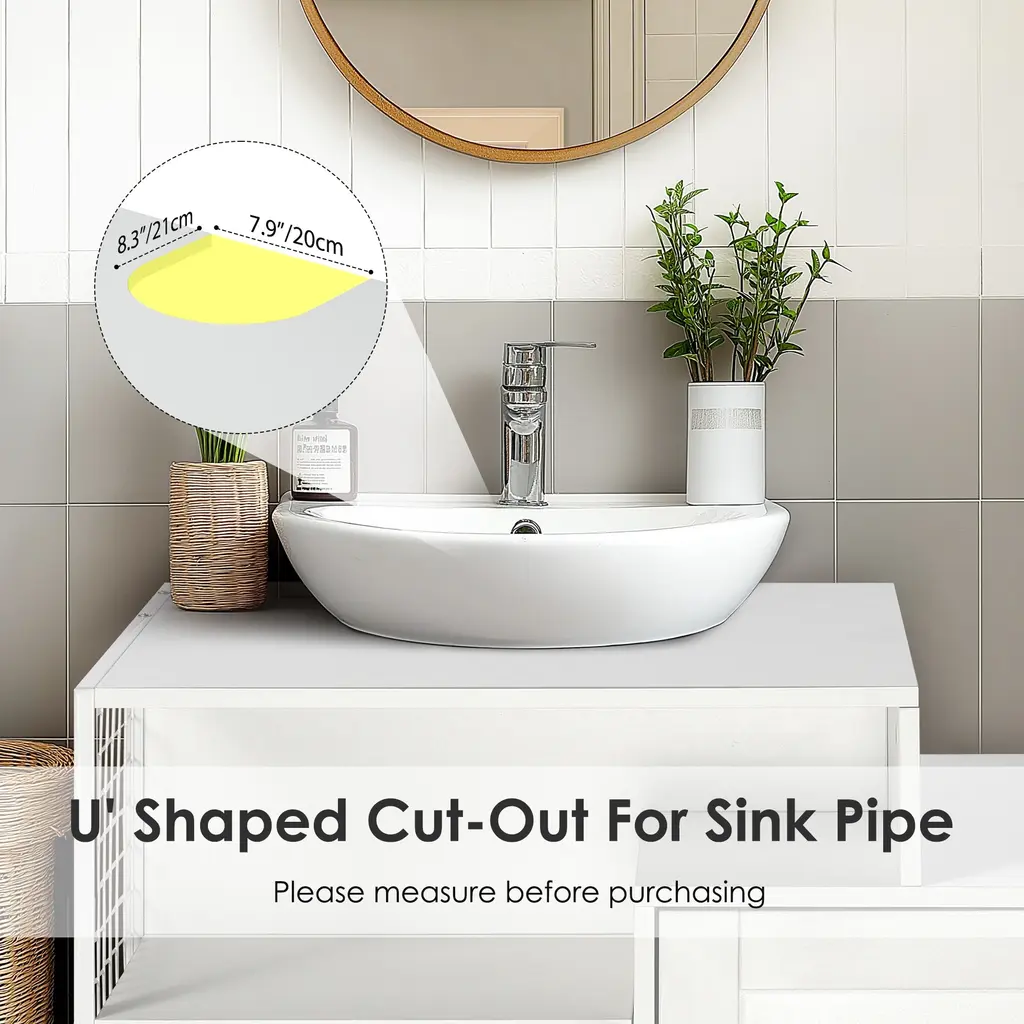Warm tips: Product after-sales guide 🚀Thank you for purchasing our products!Please do not return the product in case of problems. Please take a photo and send it to us, we will quickly process and provide a reasonable solution. Thank you for your cooperation! 🙏This cabinet is designed to be assembled under or beside your pedestal sink, providing convenient storage without taking up extra space. Please ensure compatibility with your sink size (Faucet Hole:8.5" x 8 8.25" Width * Dia).This product is not only a sink cabinet but also a Cat Litter Box enclosure. If you want to put the Cat Litter Box enclosure in the bathroom but don’t have enough space, this product will perfectly solve your problem.There are two levels of storage space, you can put some storage supplies or cat things, the left is set up a small grid mesh, while the desktop side can be placed some plants or other toiletries.We use P2 high standard particleboard production, for you and your cat more healthy, you can rest assured to use.On the right side is a litter box with a size of 51*40cm. The back is made of air holes to facilitate air circulation. At the same time, we are equipped with a 10cm high waterproof foot cover for easy cleaning.