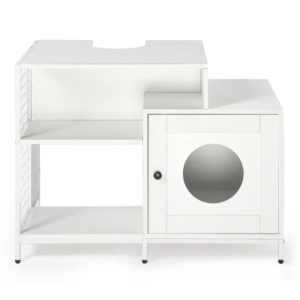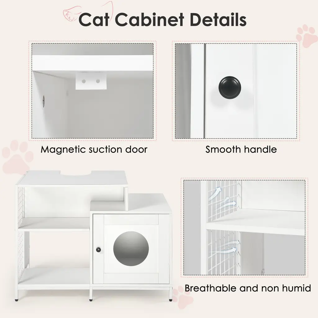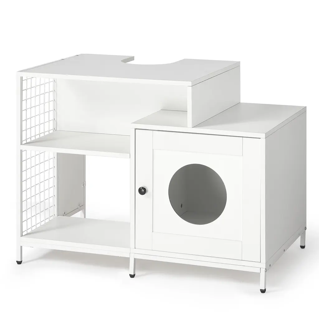 Cat Litter Box Enclosure For Bathroom, Hidden Litter Pet Washroom With Divider, Indoor Cat House For Large Cats, White - White
