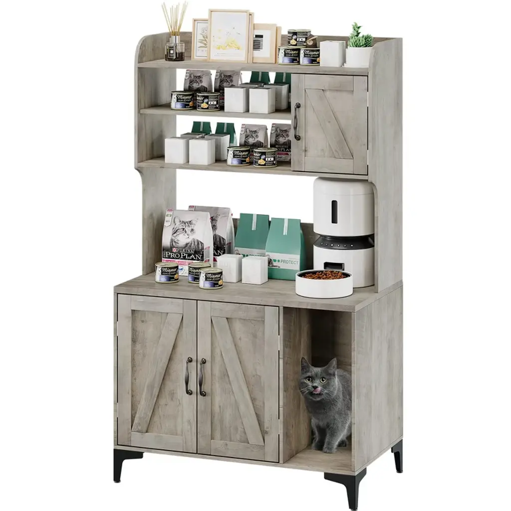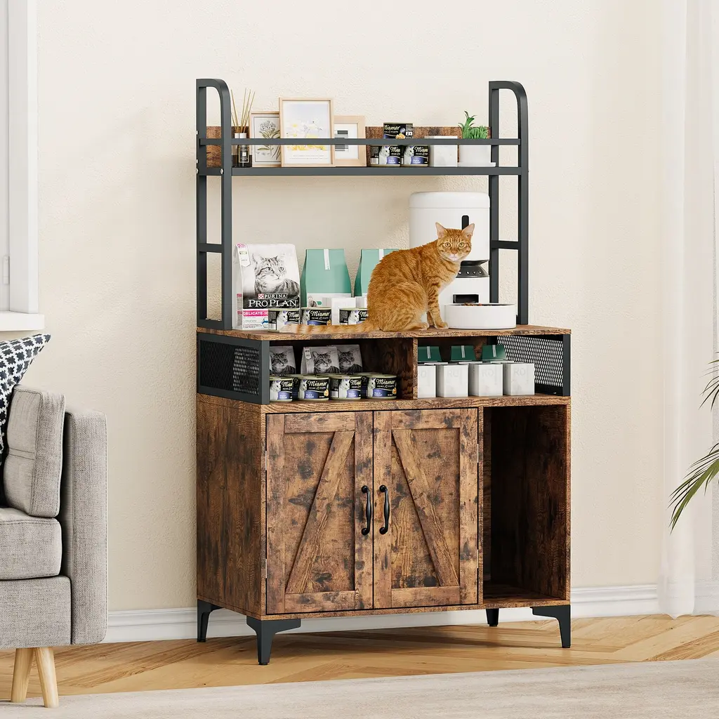 【HIDDEN CAT HOUSE】The cat litter box shell can give sensitive cats enough security and comfort. Not only does it increase the cat's range of activities and protect your pet's privacy, it also keeps your room clean and tidy. 【PLENTY OF SPACE】Cat litter box furniture is designed with 2 storage shelves and 2 storage compartments below, providing more space to store magazines, cat food, toys, spoons or other pet supplies 【STURDY AND DURABLE】This cat furniture is made of sturdy MDF panels and premium iron, which is stronger and more stable than ordinary cat toilets and can bear up to 150 pounds of weight. 【MULTIFUNCTIONAL CAT HOUSE】This hidden cat litter box looks great and can be placed in the living room, bedroom, bathroom and laundry room, perfectly blending with your home style. 【EASY TO ASSEMBLE】Our cat house includes detailed assembly instructions and tools, and each part is labeled for easy assembly.