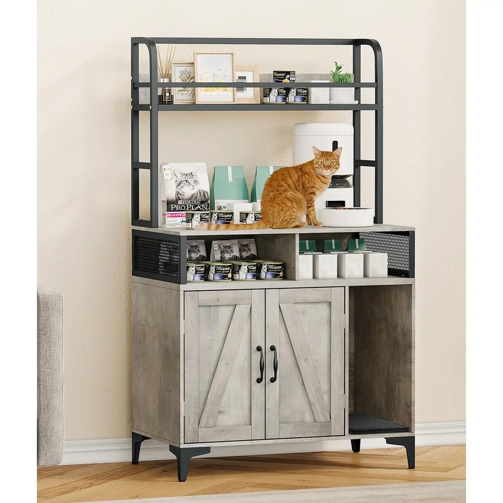 Cat Litter Box Enclosure With Shelf And Door - Grey_with Cat Litter Mat