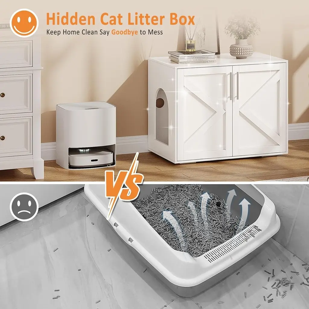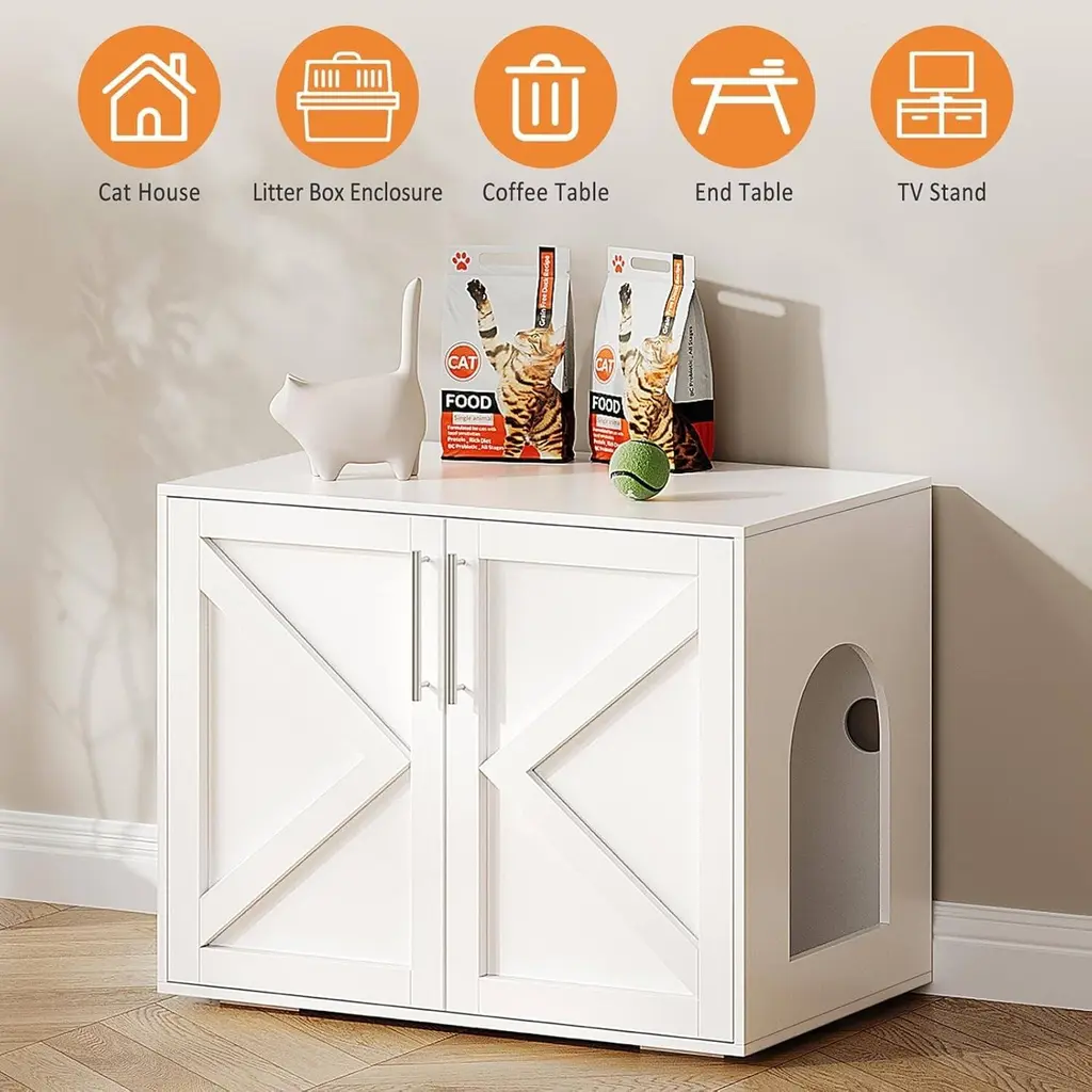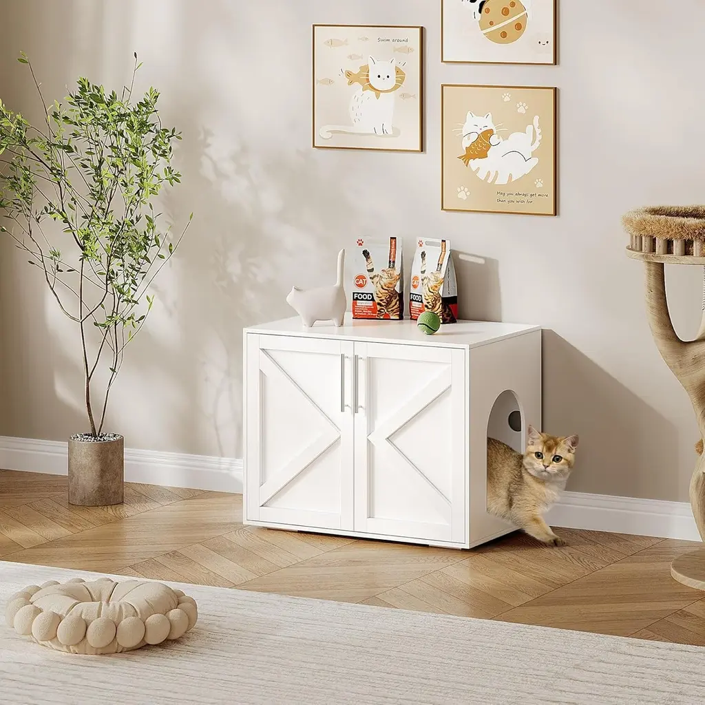 Cat Litter Box Enclosure,hidden Litter Box Furniture With Double Doors - White