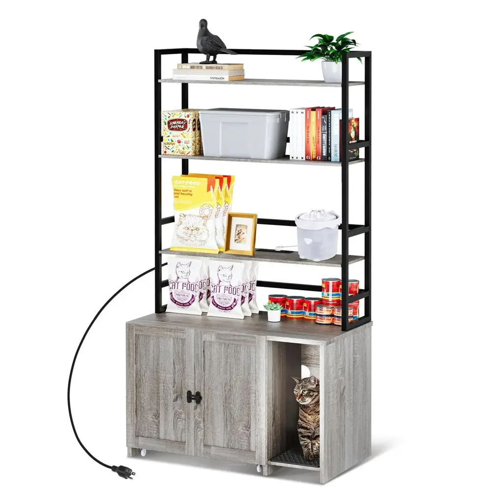 Cat Litter Box Hidden With Shelf Storage - Grey