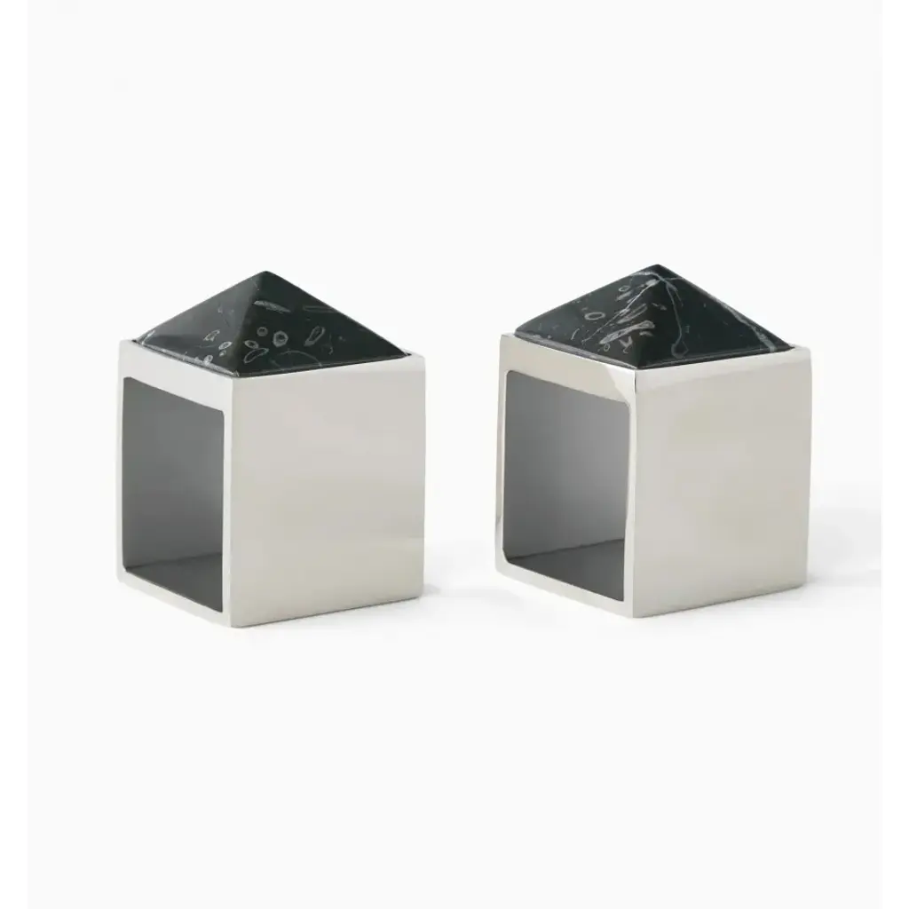 Defined by angular forms and powerful materials, the Cestia napkin rings add structured contrast and impact to a sophisticated place setting, juxtaposing soft linens with strong elements of metal, wood, and marble. Established in 1891, Sferra began in Italy as a purveyor of fine Italian lace to the discerning clientele who frequented the grand seaside resorts in the East Coast of the United States. Later, the company expanded to include damasks from Ireland, French Alencon lace, and embroideries from Belgium and Switzerland. Today, Sferra is one of the most respected and innovative brands of luxury bed, bath, and table linens in the United States.