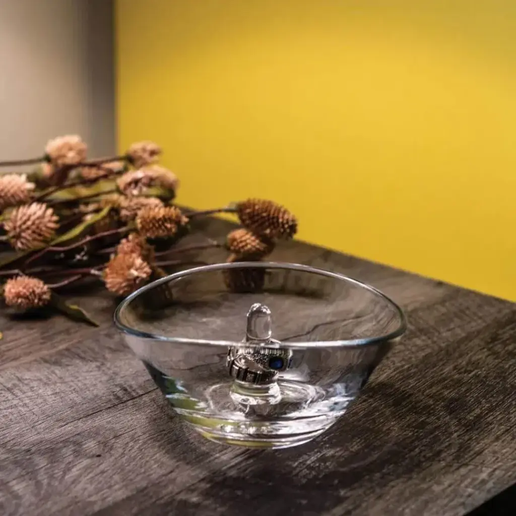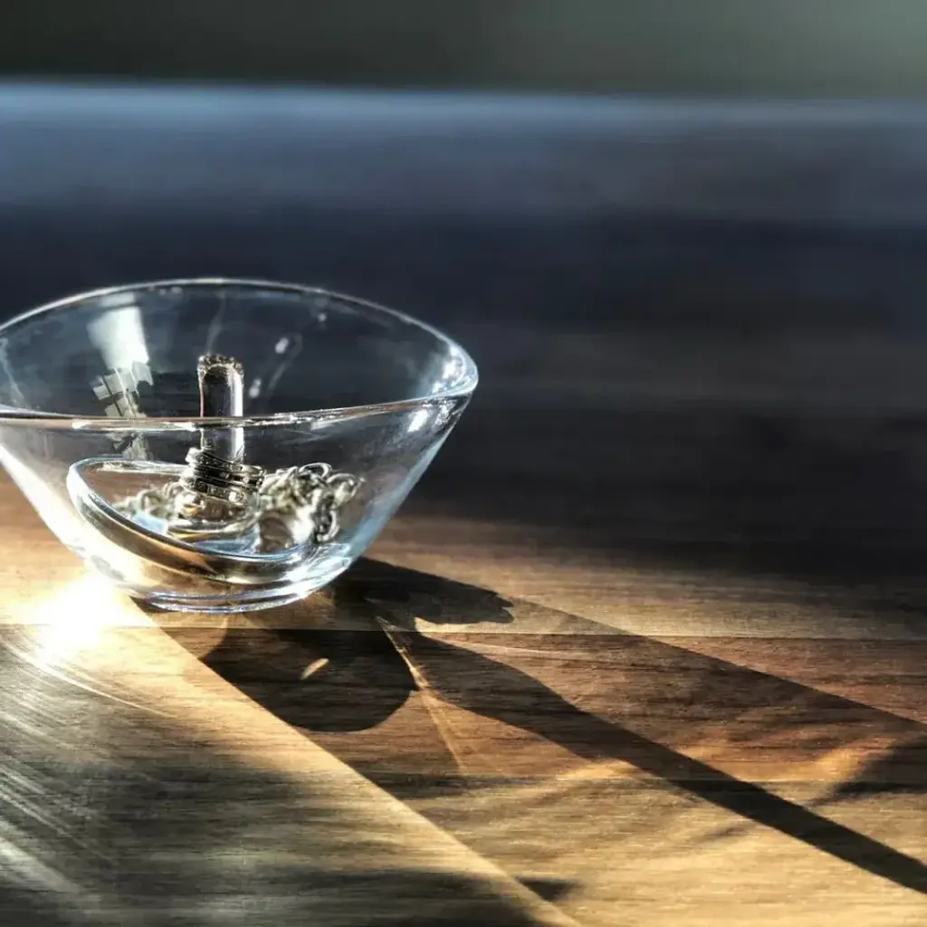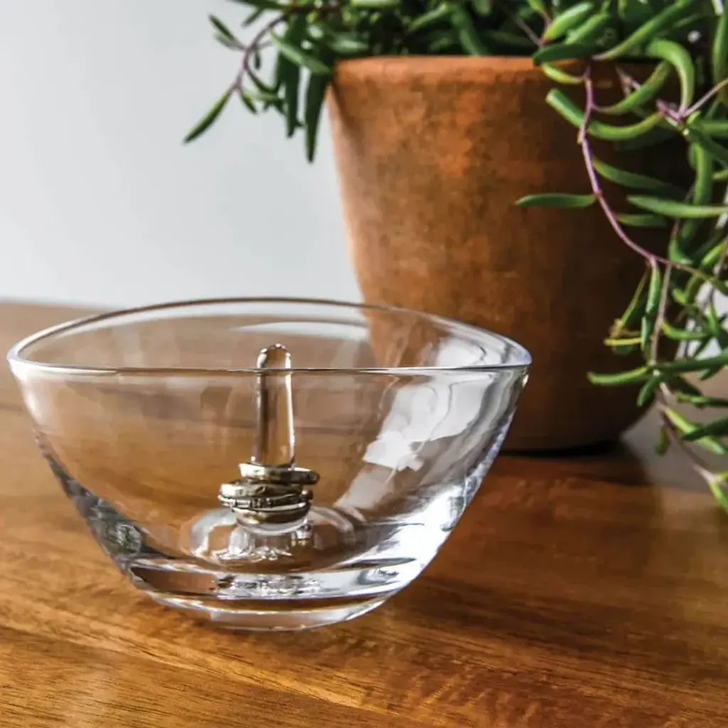 A beautiful way to hold your jewelry, the Champlain Ring Holder also makes an ideal gift for holidays, birthdays, graduations, and beyond. At Simon Pearce, fine glassware is still hand-blown in the traditional style. Simon Pearce opened his first glassblowing shop in 1971 in Kilkenny, Ireland. Ten years later, the factory was moved to Quechee, Vermont, where it remains today. The Ottauquechee River provides clean, hydroelectric power for the facility. All Simon Pearce items are proudly made in the U.S.A.