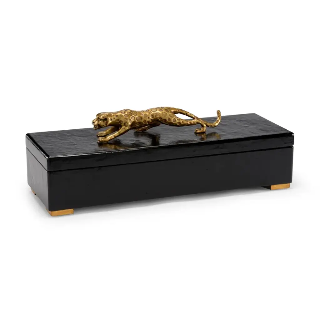 Known as the fastest land animal, the cheetah on this finished box looks ready to chase his prey. The box is crafted of wood and has a hinged lid. Add this accent to your exotic home or office design.