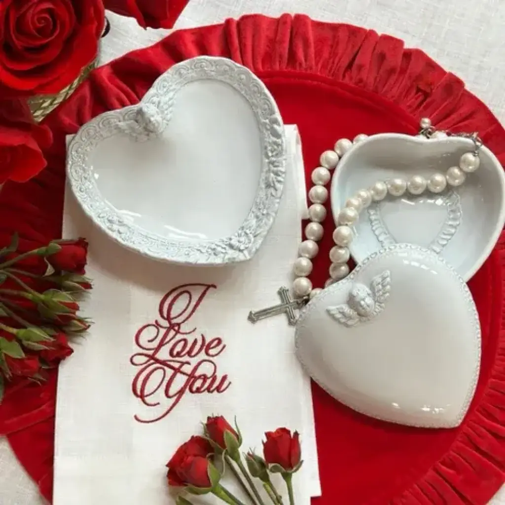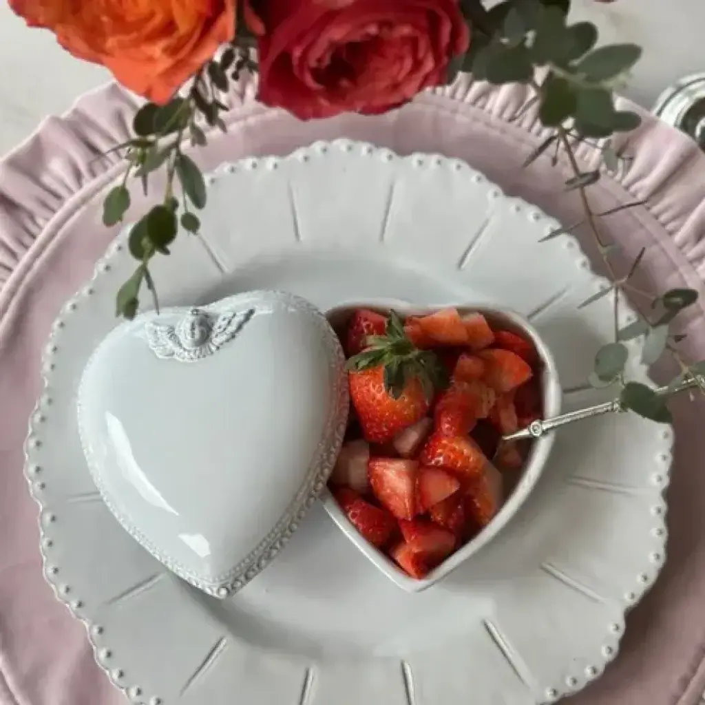 The Cherubino Heart Box is crafted from fine ceramic and topped with a charming cherub. Founded in 1997 by Ann Skidmore, Arte Italica is a story of one woman's passion for Italian history, culture, art, and vintage pewter. Today, Arte Italica is one of the leading importers of European tabletop and home accessories products in the United States. Every piece is handmade and designed so that they can easily be mixed and matched to create a timeless, classic, and effortless look.
