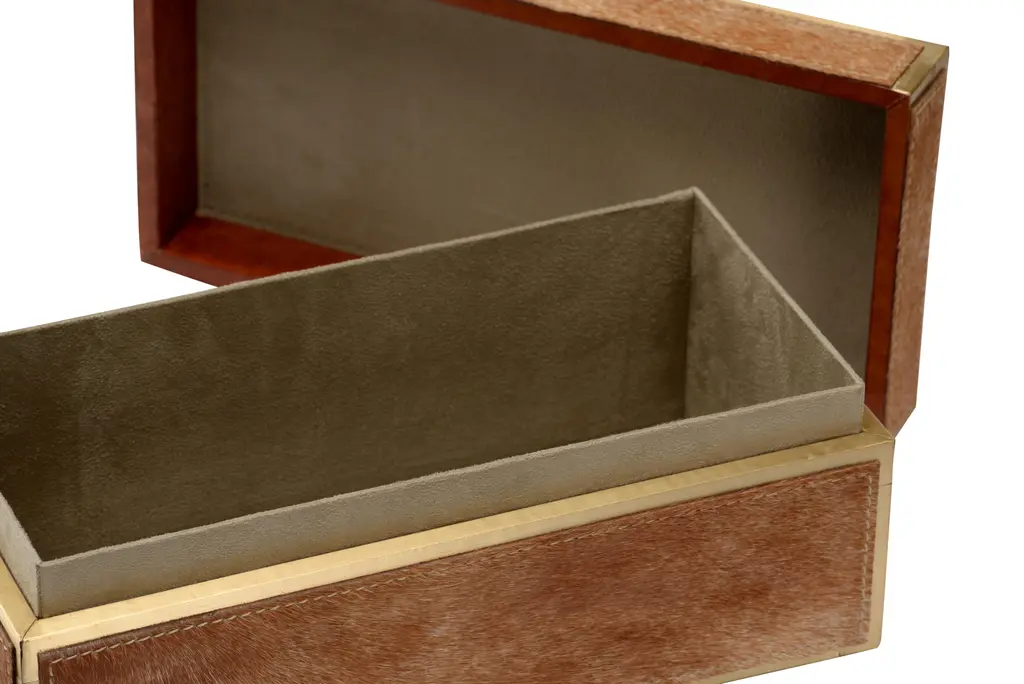 Boxed In Is A Part Of The Cheryl Luckett Collection For Wildwood. Its Warm Brass Trim, Exquisite Stitching And Soft Tan Hair On Hide Combine To Create A Decorative Box With Understated Elegance. The Removable Lid And Interior Felt Lining Provide A Safe Place For Storing And Organizing Jewelry And Other Small Trinkets.