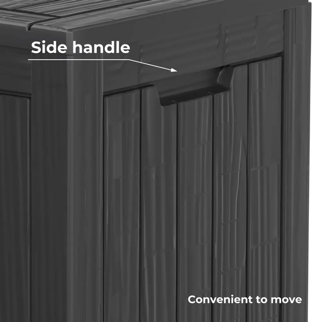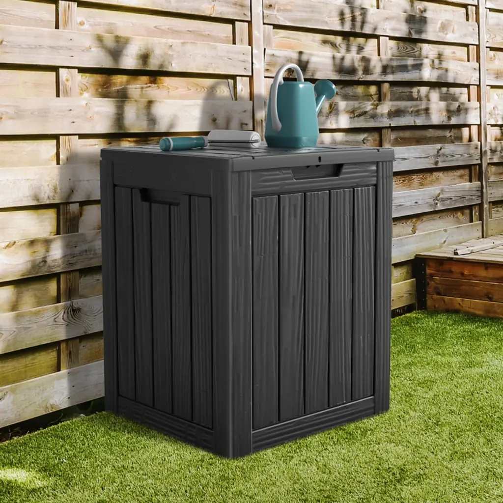 About This ProductThe 28-gallon deck box is perfect for stashing away outdoor accessories on your patio or cold-weather gear inside your laundry room or garage. Featuring weather-resistant plastic construction that allows for year-round use and easy maintenance to complement your existing this unit packs style and convenience into a small footprint. Regardless of your unique needs, this stylish deck box will make a great addition to your home.Features Design it is equipped with sturdy side handles for easy transportation within this reasonable price range, you will get a product that truly offers value for your outdoor storage needs.Size is ideal for indoor or outdoor settingsUndergone authoritative sun protection certification (sgs 1000plus), ensuring excellent waterproof and fade-resistant capabilities it can withstand various weather conditions and maintain its appearance like a newSeat or indoor table, adding practical value to your outdoor space whether you want to relax or host outdoor gatherings, it meets a variety of needsSpace, allowing you to easily store additional items like patio cushions, pillows, pool toys, gardening tools, and more, keeping your backyard clean and organizedEffortlessly assemble it in just 15 minutes we provide clear instructions to guide you through the assembly process, saving you time and effort