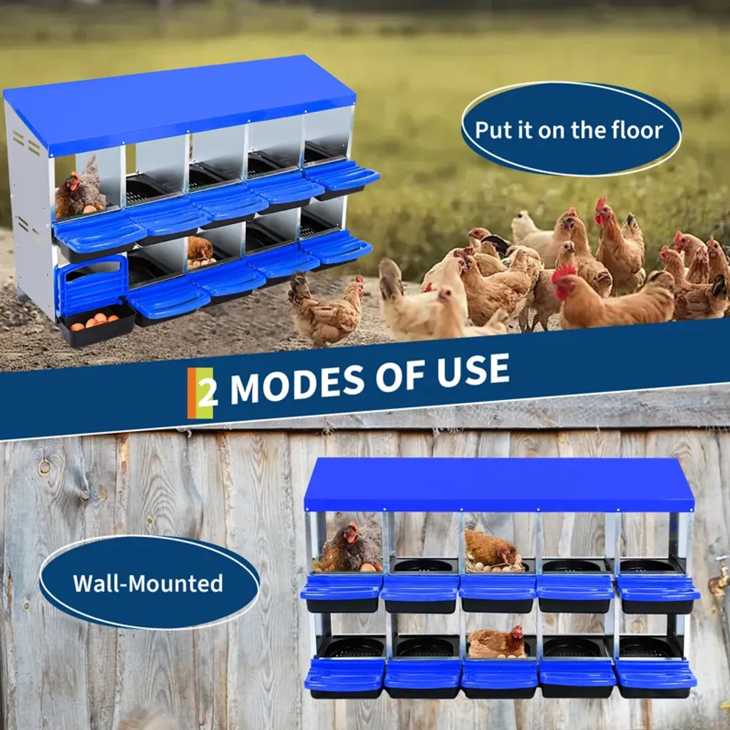 Chicken Nesting Box, 10 Holes Nest Boxes For Chicken, Chicken Laying Box With Chicken Perch, Roll Away Nest Box For Chicken Coop,blue Without Legs