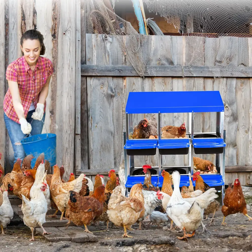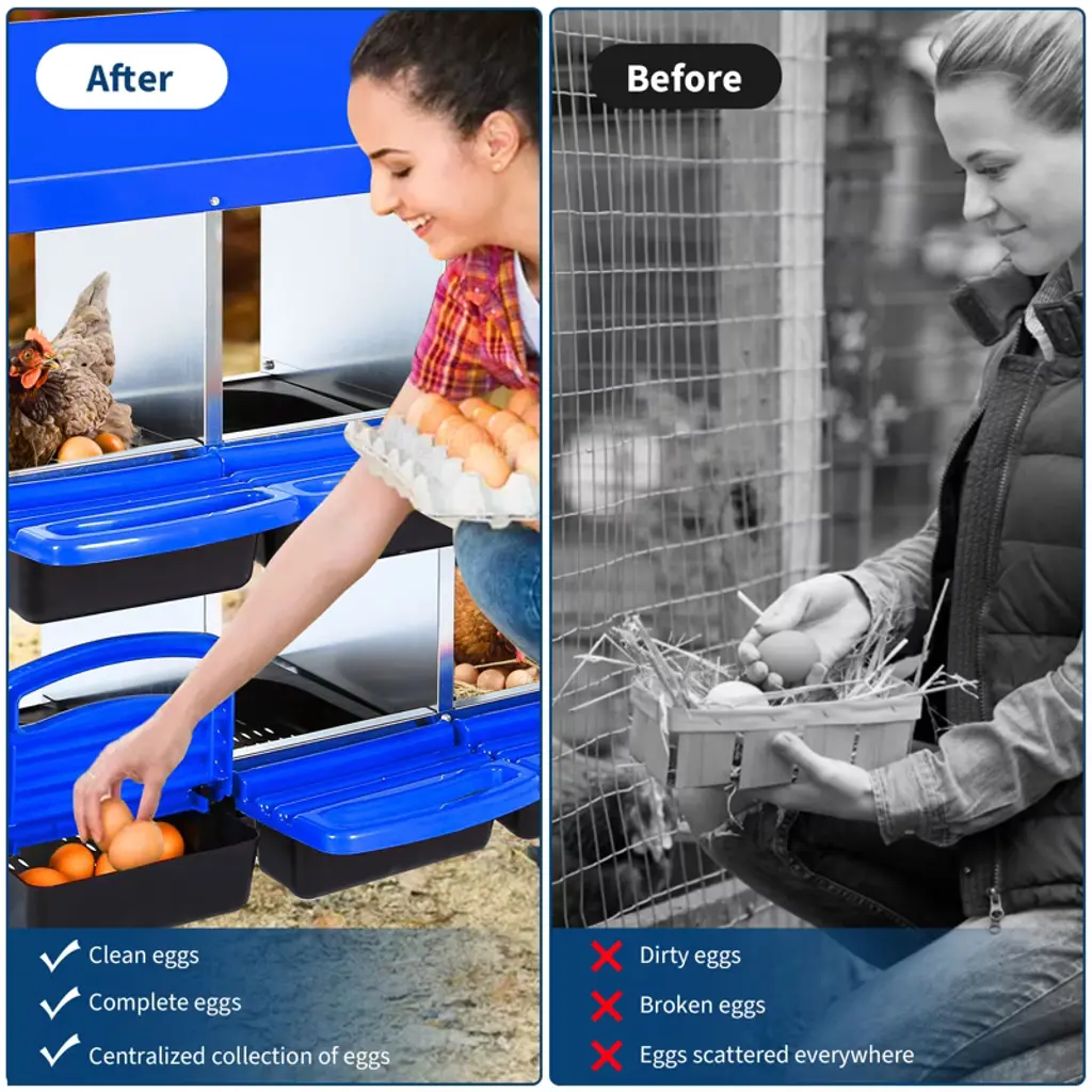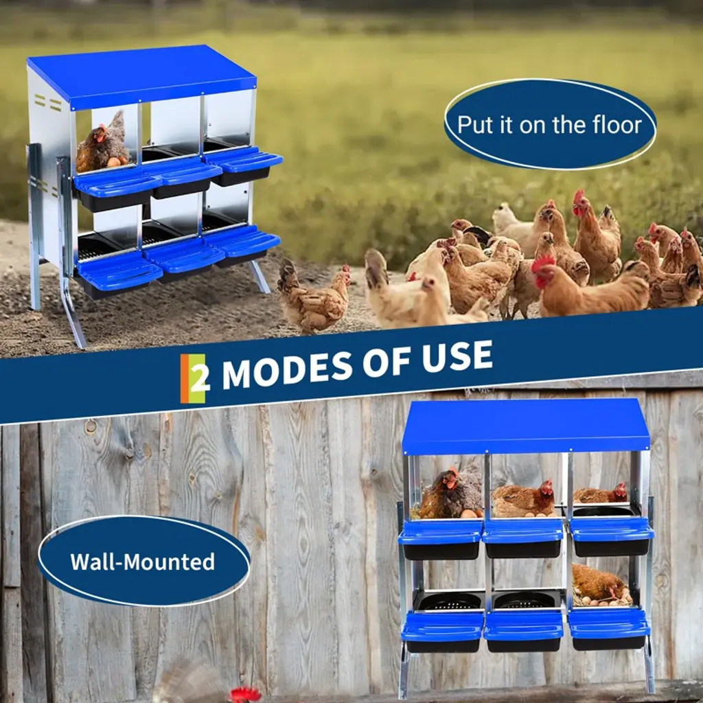 Chicken Nesting Box, 6 Holes Nest Boxes For Chicken, Chicken Laying Box With Chicken Perch, Roll Away Nest Box For Chicken Coop, Blue With Legs