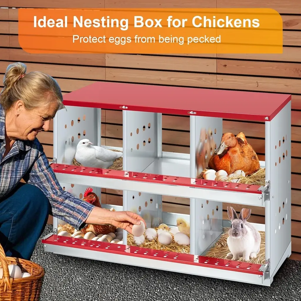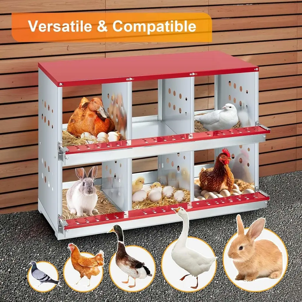 Chicken Nesting Box For Hens, Rabbits, Ducks - Red - Red 6 Compartments With Cover