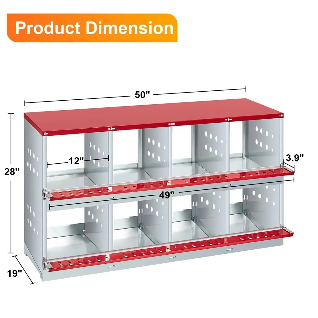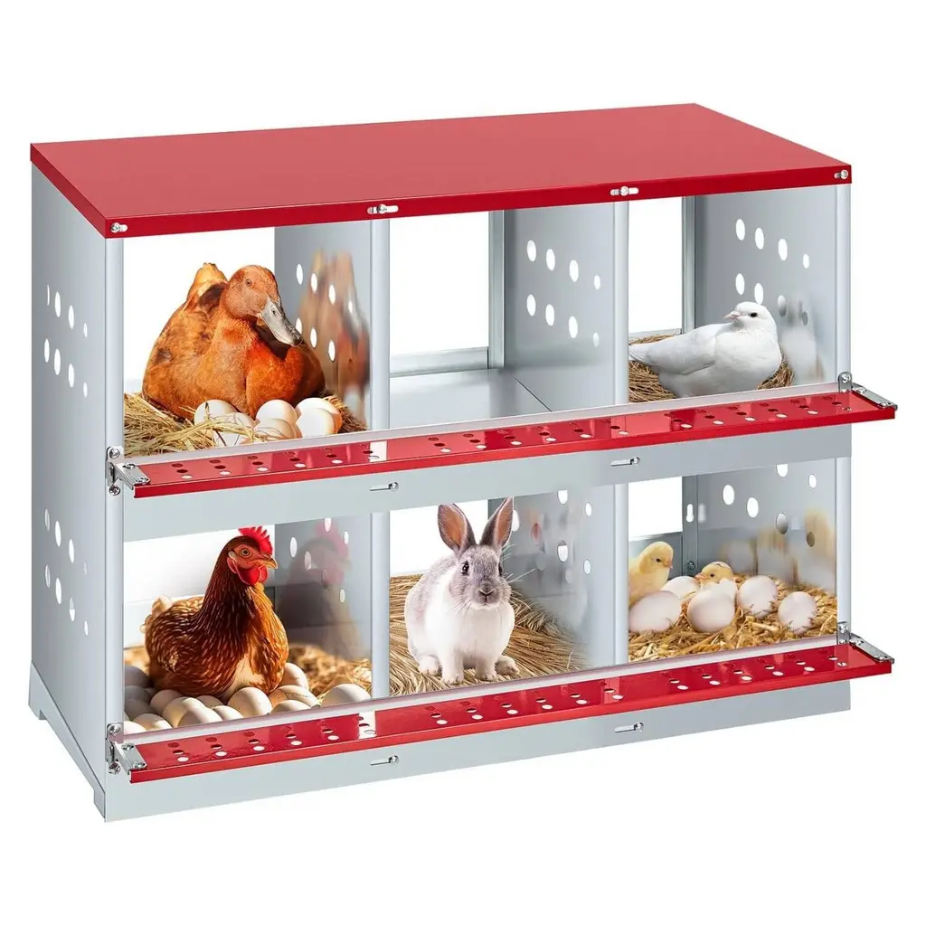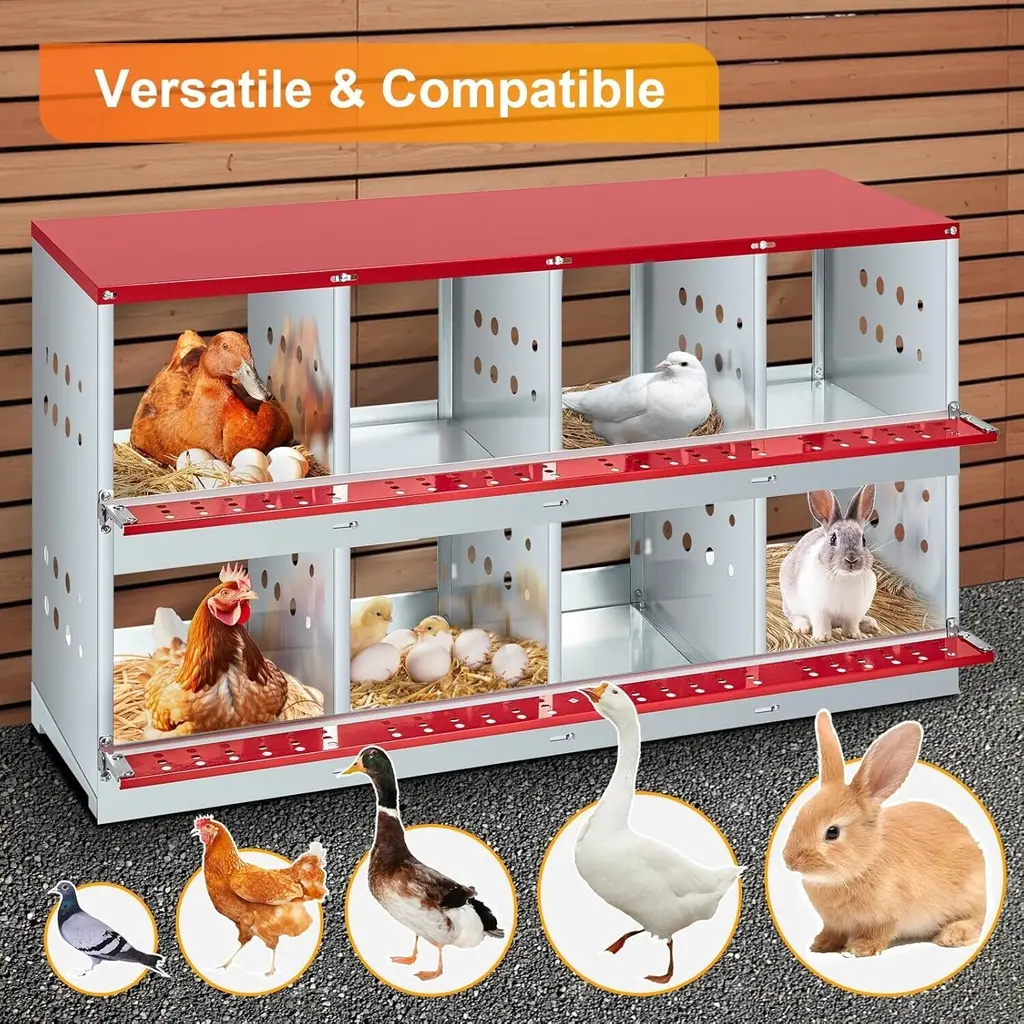Chicken Nesting Box For Hens, Rabbits, Ducks - Red - Red 8 Compartments