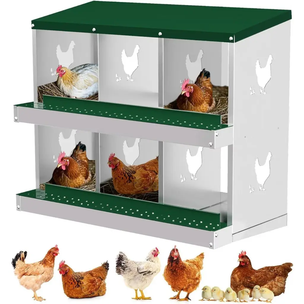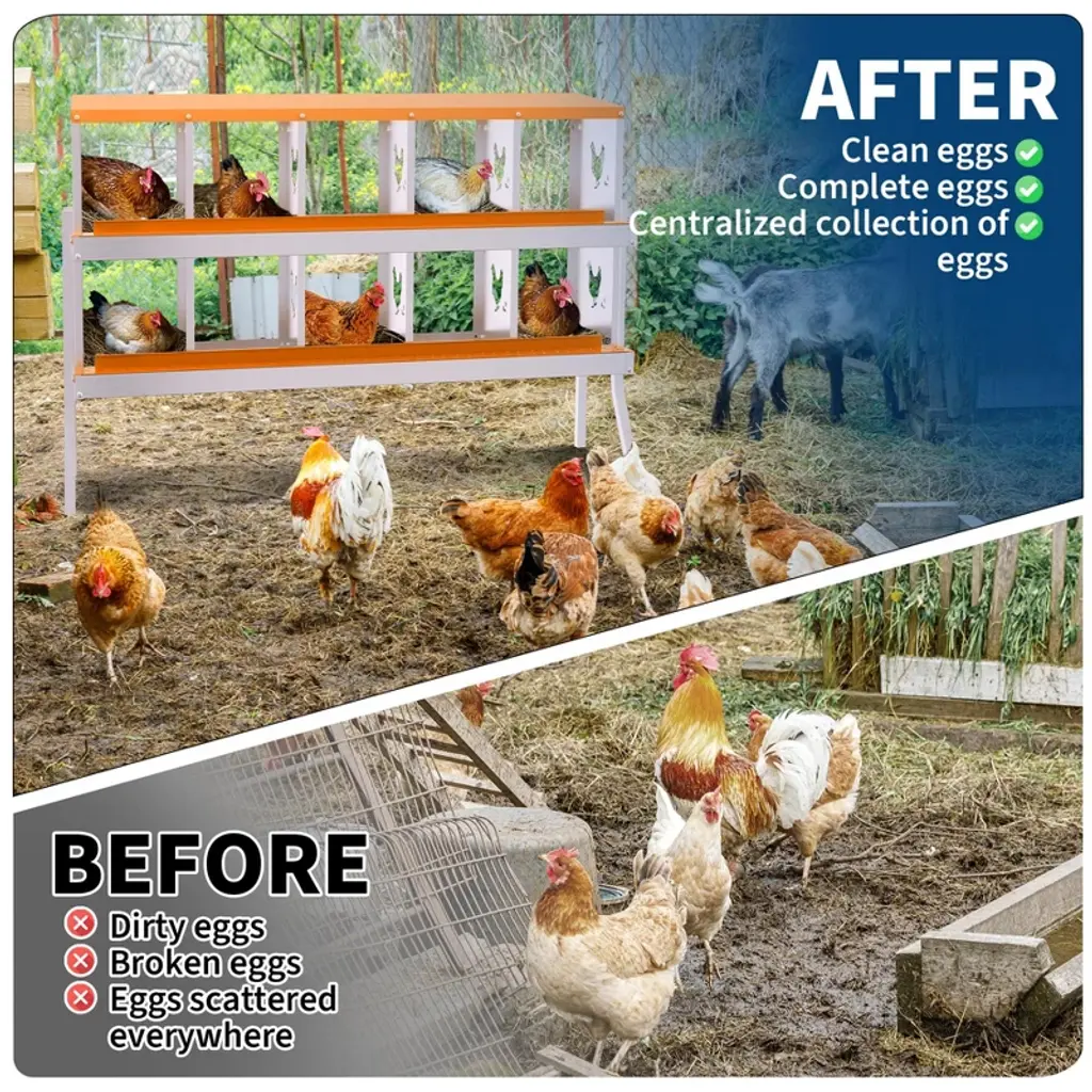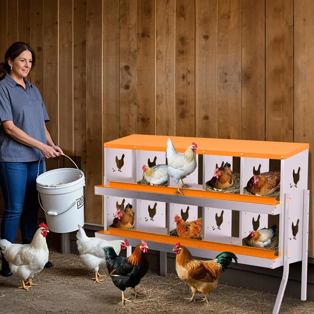 10-Hole Chicken Nesting Box ¨C Metal Roll Away Nest Box for Chicken Coop with Ventilation, Egg Collection Tray & Lid Cover Product Description:Efficient, Clean & Safe Egg CollectionUpgrade your poultry setup with the TROPOW 10-Hole Roll Away Nesting Box, designed to protect eggs and simplify farming. Its smart tilt system gently rolls eggs into a secure collection area, reducing breakage and keeping nests clean. Pro Tip: Add a soft mat under the lid for extra cushioning!Key Features:? Roll-Away Egg Design ¨C Eggs automatically tilt into a covered collection tray, minimizing contamination and breakage.? Durable Galvanized Steel ¨C Rust-resistant metal construction for long-term outdoor use.? Ventilated & Spacious ¨C Integrated airflow holes keep the nesting area dry and comfortable for hens.? Two Installation Options ¨C Freestanding (with included metal feet) or wall-mounted (built-in hanging holes).? Multi-Poultry Use ¨C Fits chickens, ducks, geese, and rabbits (great for small farms or backyard coops).Technical Specifications:Brand:TROPOWMaterial:Galvanized Steel (Sides/Top)DimensionsNot specified (check manual)Weight:30.6 lbsCapacity:10 nesting holesInstallationFreestanding or wall-mountedSpecial FeaturesRoll-away egg collection, ventilation holes, lockable lidIncluded AccessoriesMetal feet, screws/nuts for assemblyWhy Farmers Love This Nesting Box:? Saves Time ¨C No more searching for eggs; they roll safely into the tray.? Hygienic Design ¨C Keeps nests clean and reduces egg pecking/breakage.? Happy Hens ¨C Ventilation and space reduce stress and boost egg production.? Heavy-Duty Build ¨C Withstands outdoor weather and frequent use.