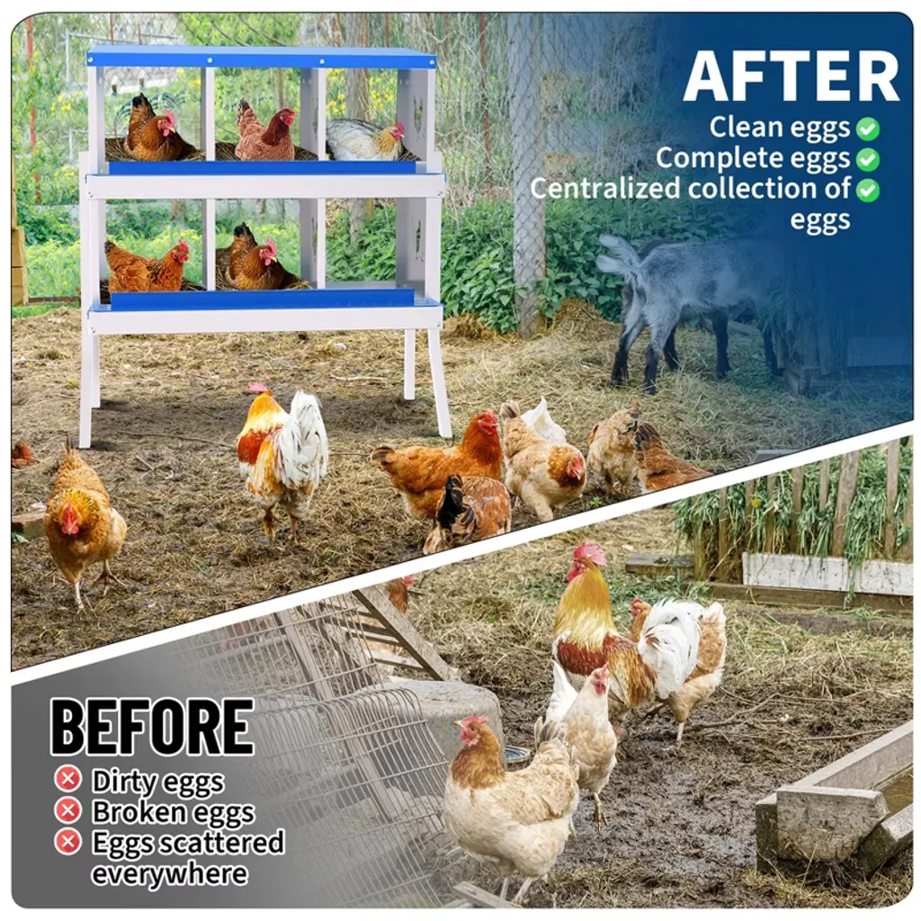 Looking for an easier way to collect fresh eggs and keep your hens happy? Imagine giving your flock a spacious, rust-resistant chicken nesting box that’s quick to install and simple to clean—are you ready to upgrade your coop for healthier hens and more eggs? Highlights at a Glance: - Thick Galvanized Rust Resistant Steel - Spacious Design For Comfortable Laying - Easy To Install With Included Hardware - Quick Egg Collection - Fits Various Coop Sizes And Layouts - Durable Safe And Long Lasting Construction Specification: Name: Nesting boxes for chickens Shape: Rectangular Material: Galvanized Steel Size: 6 Compartment without Bracket Legs: 32" L x 17" W x 26.6" H 6 Compartment with Bracket Legs: 32" L x 17" W x 35.2" H 8 Compartment without Bracket Legs: 42.5" L x 17" W x 26.6" H 8 Compartment with Bracket Legs: 42.5" L x 17" W x 35.2" H 10 Compartment without Bracket Legs: 53.5" L x 17" W x 26.6" H 10 Compartment with Bracket Legs: 53.5" L x 17" W x 35.2" H Packing List: 1 x Chicken nesting boxes for laying eggs Important Notes for Using Your Chicken Nesting Box: 1. You can put hay and cloth in the nest, the chickens will like it more. 2. Ensure the nesting box is securely assembled and all screws and nuts are tightened before placing it in the coop. 3. Install the box in a dry, sheltered area of your coop to prevent water exposure and maximize durability. 4. Place the nesting box at a comfortable height for your hens to enter and exit easily. 5. Regularly clean the removable tray to maintain a hygienic environment and promote healthy egg production.