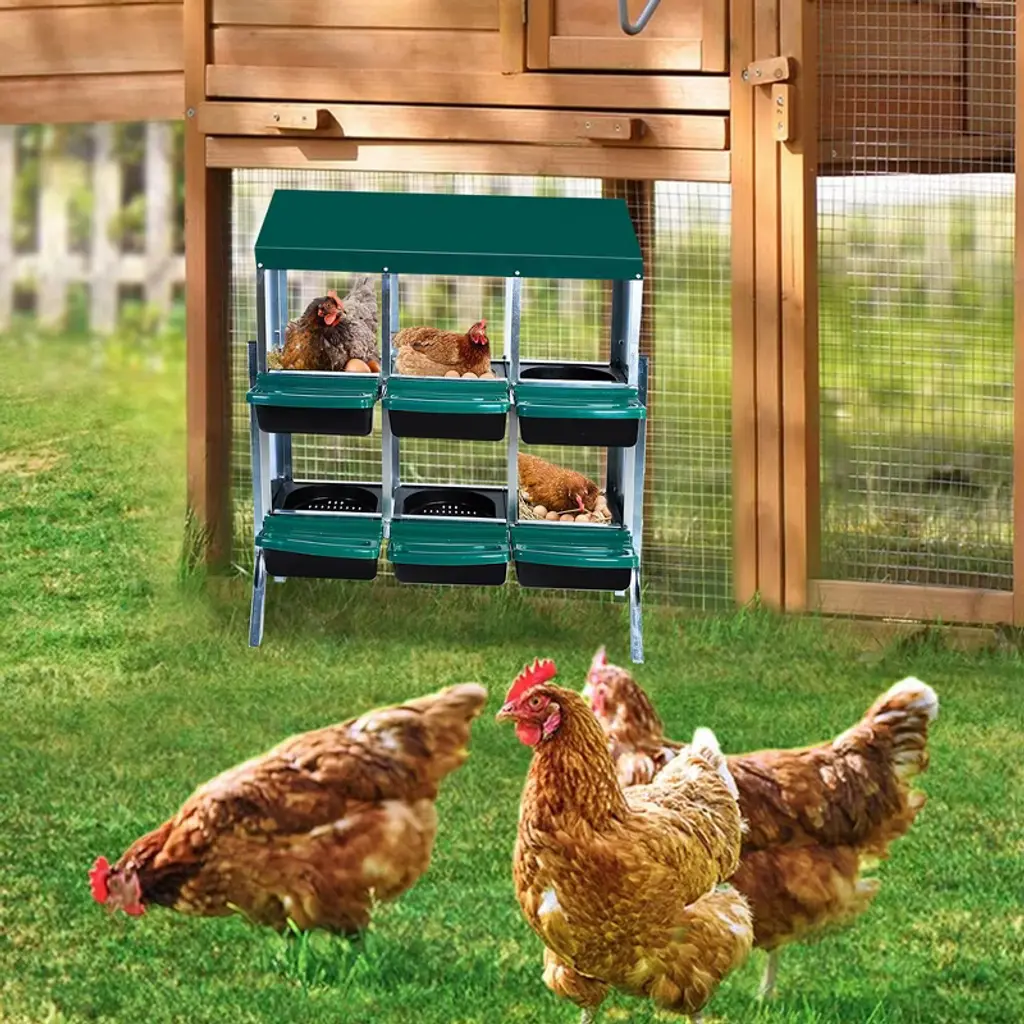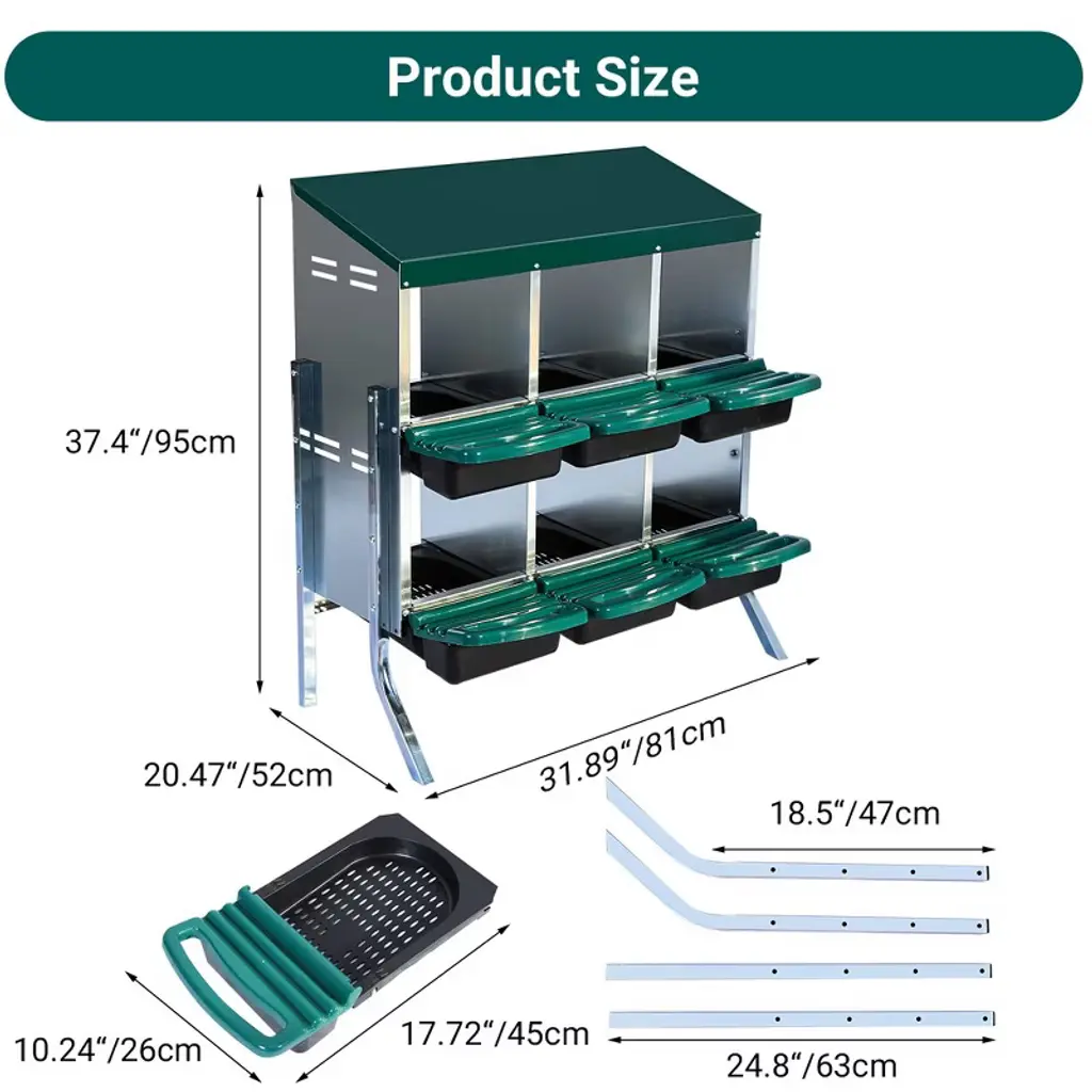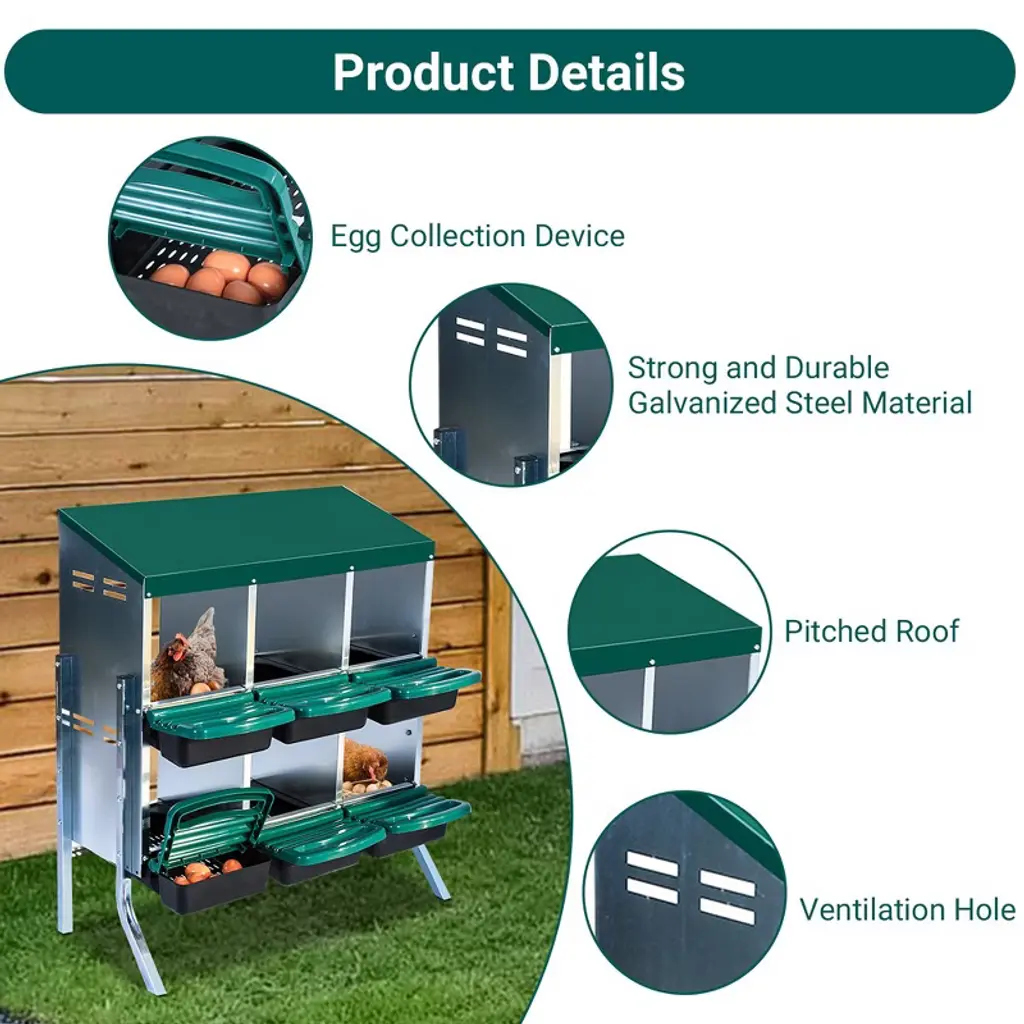 escription: Name: Chicken Nesting Boxes Sturdy design: The sides and roof are made of galvanized steel, with a sturdy structure and ventilation holes to provide fresh air for hens and keep the nest box dry and cool. Quick installation: All screws and nuts required for assembly are included, and clear instructions are included. The key-shaped hanging hole makes it easy to hang and remove, and the nest box can be installed at a height of 18-20 inches from the ground Easy to clean: The bottom of the nest box is designed with many small holes to prevent water accumulation, debris and other excess, and can be cleaned with water by removing the tray.