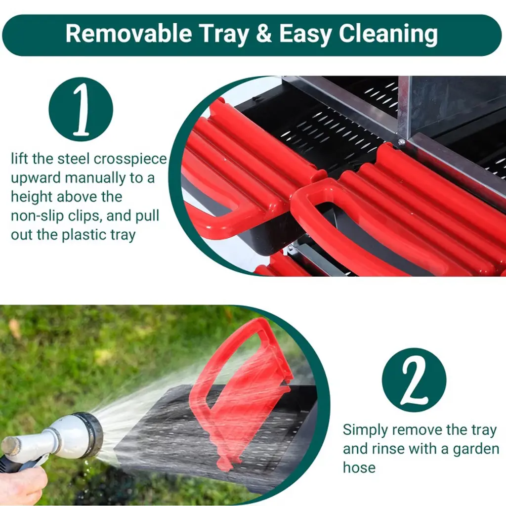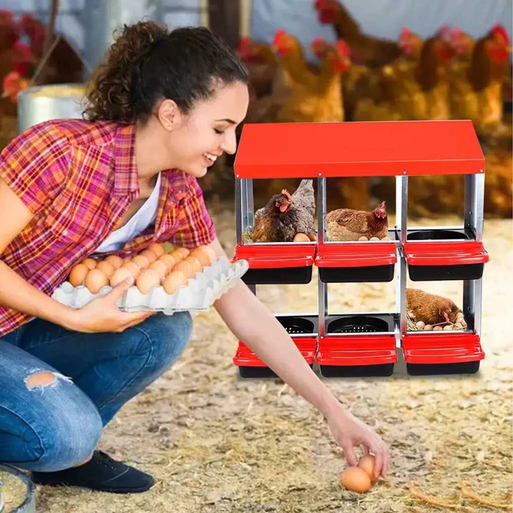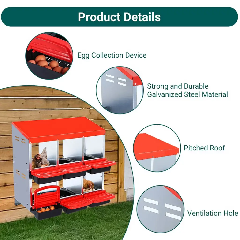 escription: Name: Chicken Nesting Boxes Sturdy design: The sides and roof are made of galvanized steel, with a sturdy structure and ventilation holes to provide fresh air for hens and keep the nest box dry and cool. Quick installation: All screws and nuts required for assembly are included, and clear instructions are included. The key-shaped hanging hole makes it easy to hang and remove, and the nest box can be installed at a height of 18-20 inches from the ground Easy to clean: The bottom of the nest box is designed with many small holes to prevent water accumulation, debris and other excess, and can be cleaned with water by removing the tray.