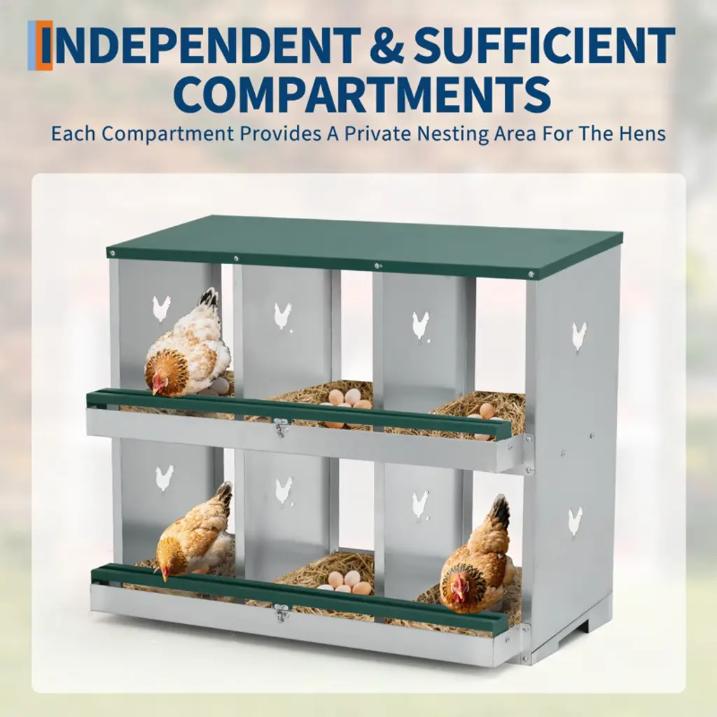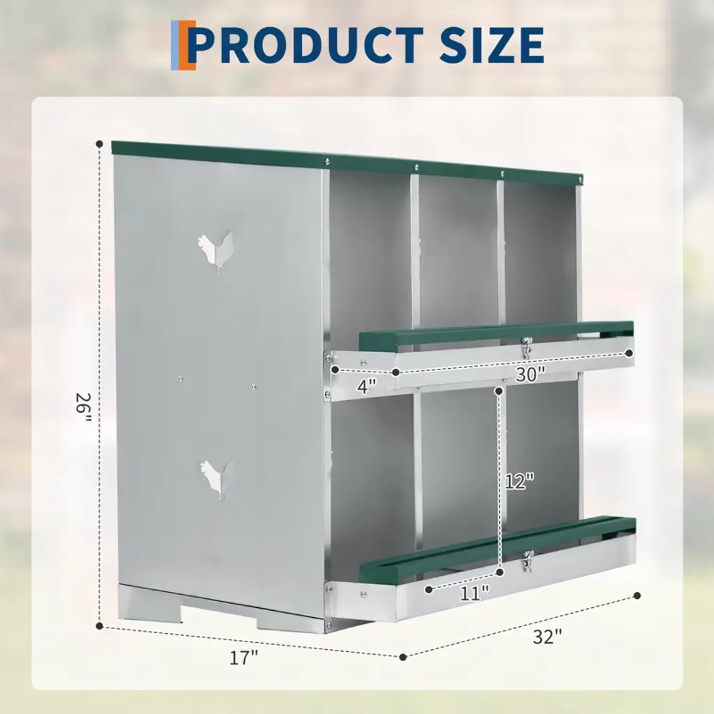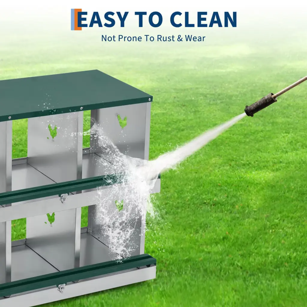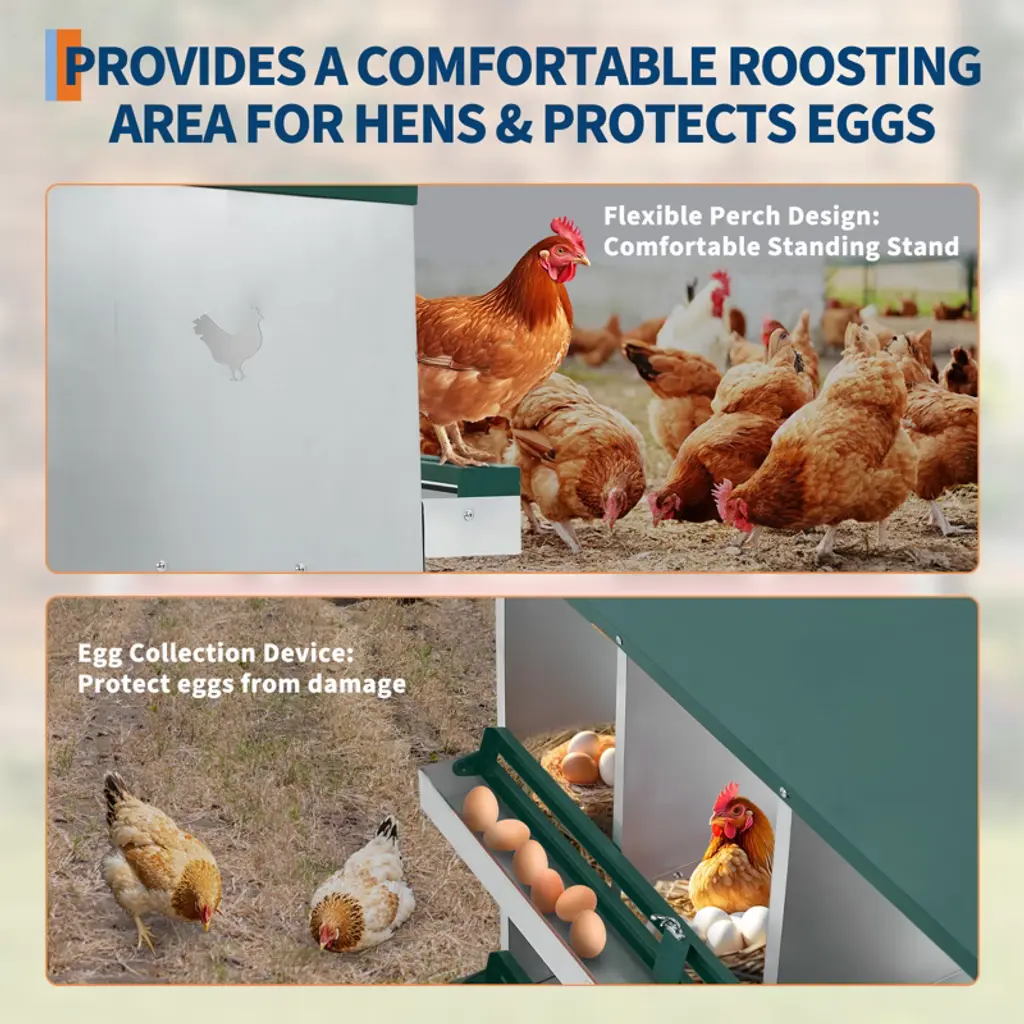 Long-Life for Use: Chicken Nesting boxes for chickens is constructed with rugged galvanized steel for both the roof and sides, ensuring it withstands the test of time. Ventilation holes have been strategically placed to promote airflow, keeping the nesting area dry and cool for your hens. Invest in a product that combines strength with comfort, ensuring your hens have a safe and pleasant laying eggs