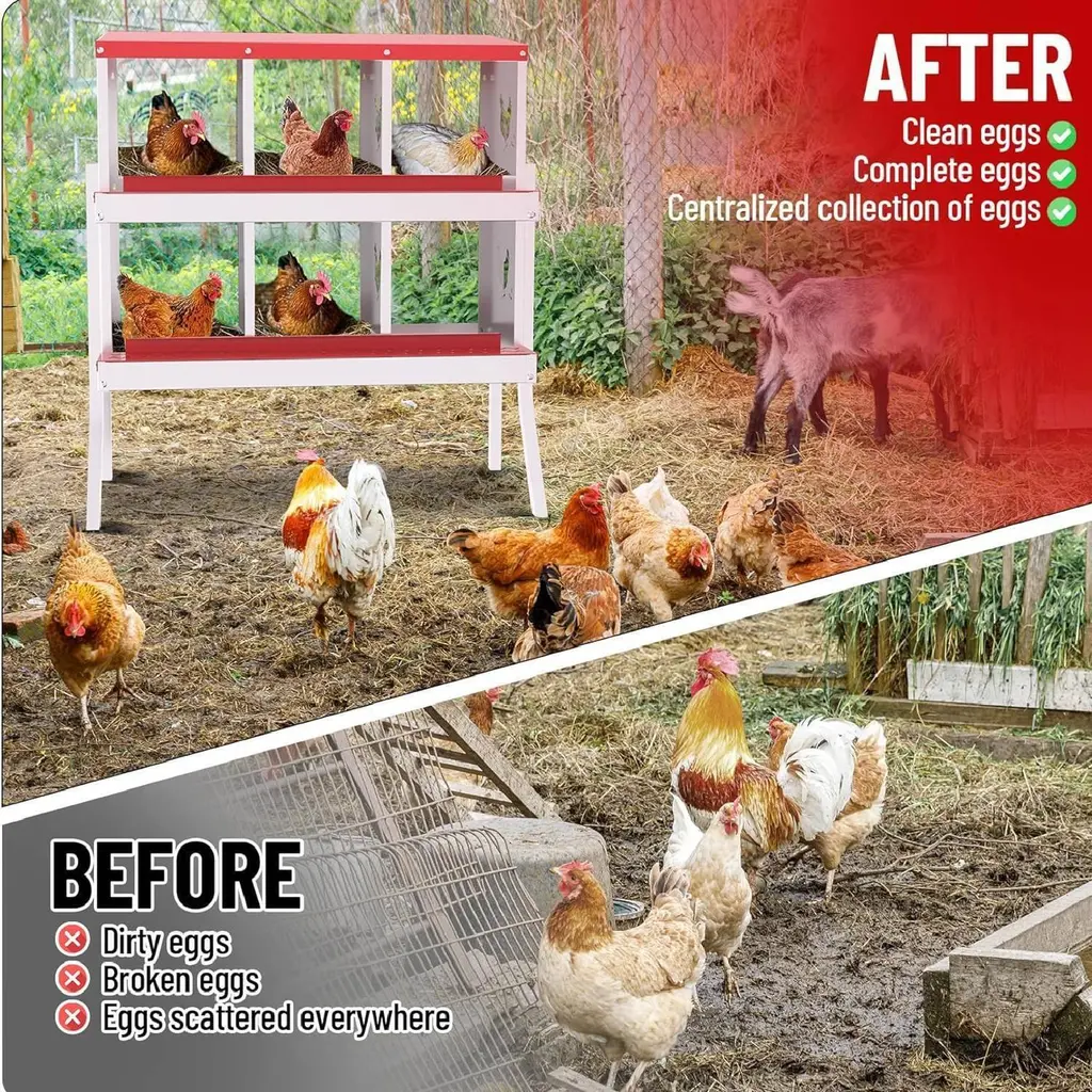 [DURABILITY AND CONSTRUCTION] Built to Last: Our chicken nesting box is meticulously crafted from heavy-duty galvanized steel, ensuring it withstands the rigors of outdoor conditions. Unlike flimsy plastic options that can wear out quickly, this robust design is resistant to rust, providing a stable and secure environment for your poultry. With this nesting box, you can invest in a long-term solution for your chickens and other fowl[INNOVATIVE EGG COLLECTION SYSTEM] Effortless Egg Safety: The chicken laying boxes features an innovative design with a gentle tilt that allows eggs to roll into a secure collection area, significantly reducing the breakage. This smart design promotes cleanliness in the nesting area, making egg collection a breeze. For added protection, consider placing padding under the lid your eggs further.[COMFORTABLE AND HEALTHY ENVIRONMENT] Enhancing Hen Welfare: Designed with the well of your hens in mind, our chicken nesting boxes provides ample space and strategically placed ventilation holes. This allows for optimal airflow, keeping the nesting area dry and cool. A good environment not only promotes comfort but also enhances egg production, ensuring your hens are happy and productive. With these features, you can create the ideal setting for your poultry to thrive.[SIMPLE INSTALLATION WITH FLEXIBLE OPTIONS] Quick and Easy Setup: Our nesting boxes for chickens comes with all the necessary screws and nuts, along with clear, step-by-step instructions that make installation a straightforward process. Whether you choose to mount it on the wall, use the high feet for elevated placement, or set it directly on the ground, the versatile installation options allow you to customize the setup to best fit your poultry environment.